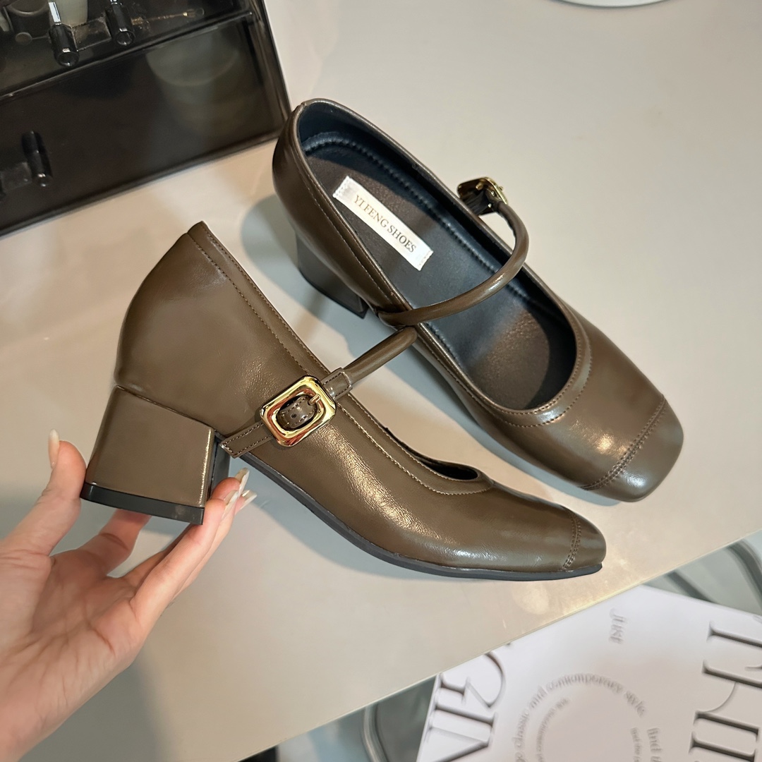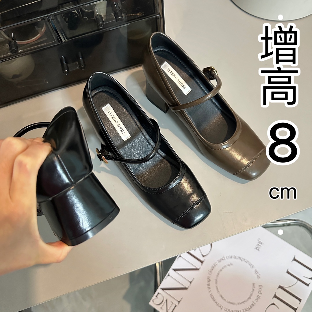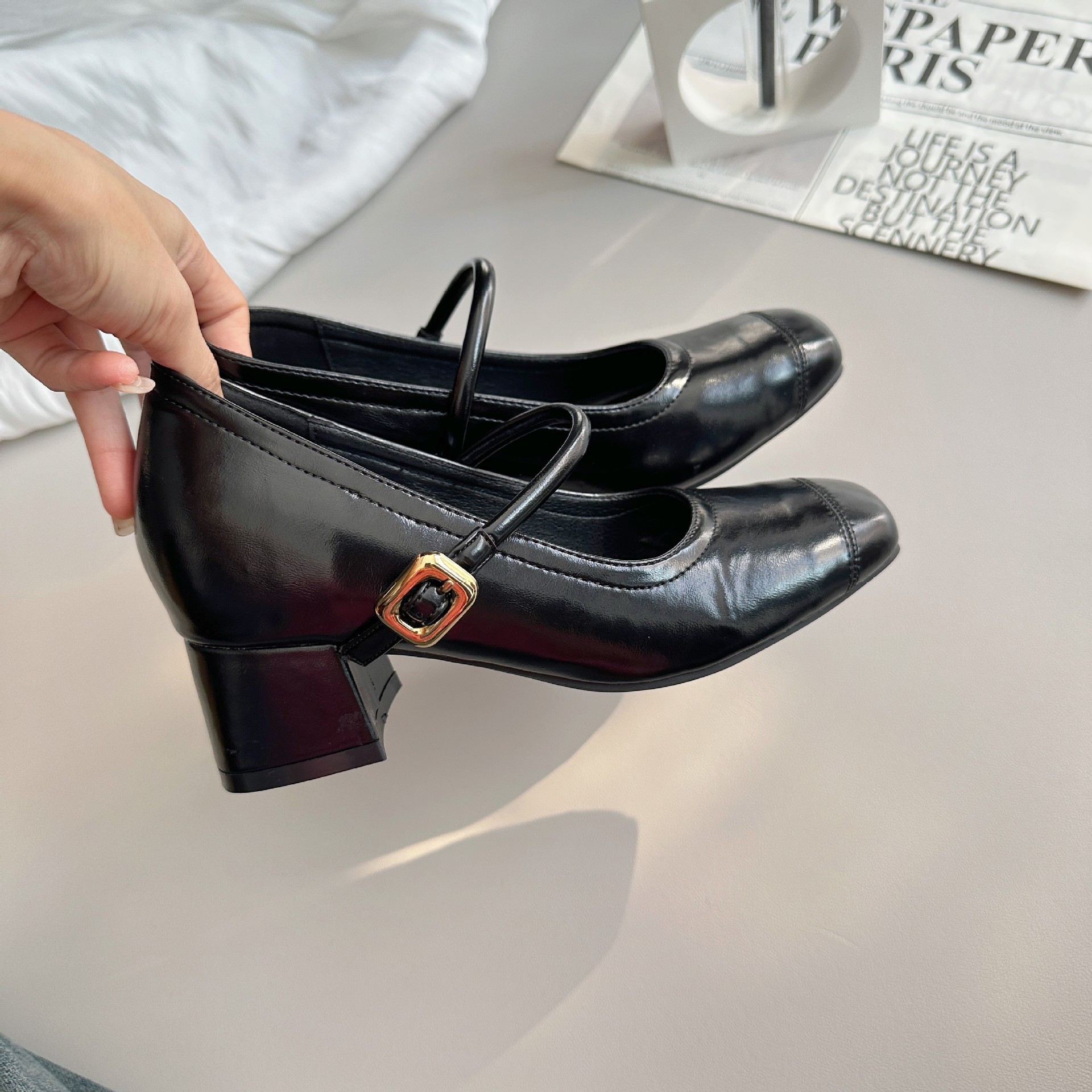 작은 부드러운 가죽 두꺼운 힐 플러스 8cm 메리 제인 여성 신발 버클 벨트 스퀘어 발가락 얕은 입 통근 여성 신발스토어 가기