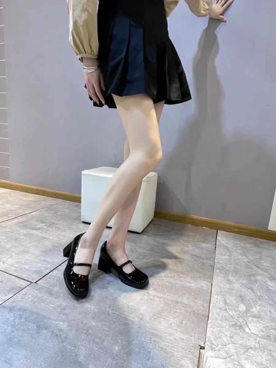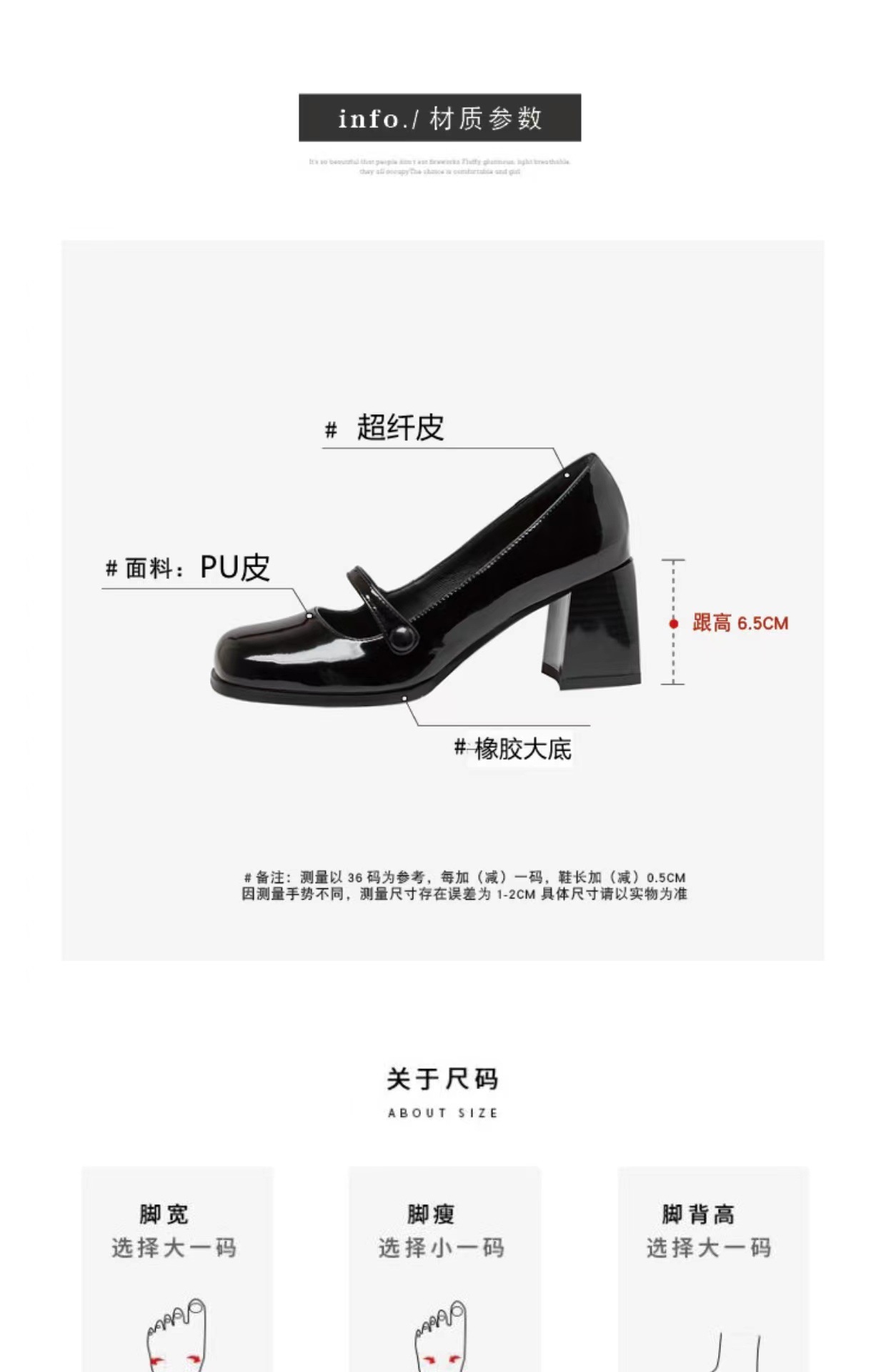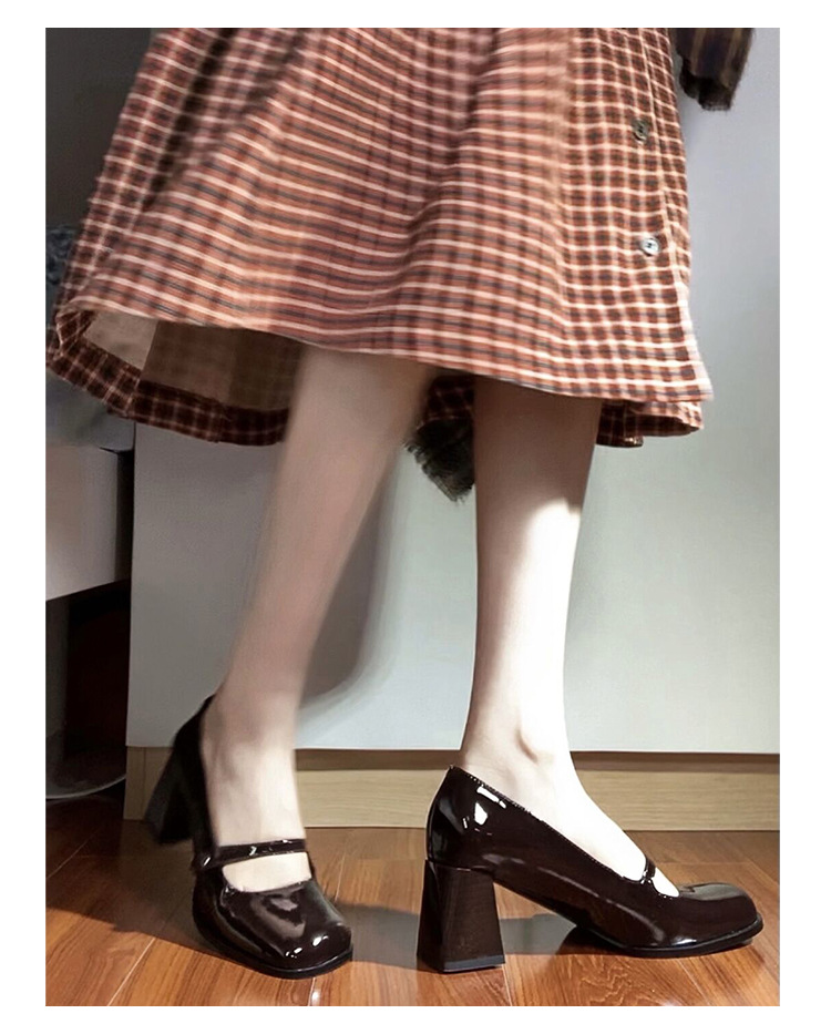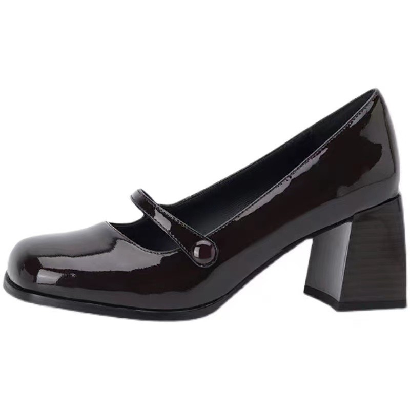 프랑스 하이힐 ~ 메리 제인 신발 스퀘어 헤드 2024 새로운 복고풍 중간 두꺼운 힐 작은 가죽 신발 jk 단일 신발스토어 가기