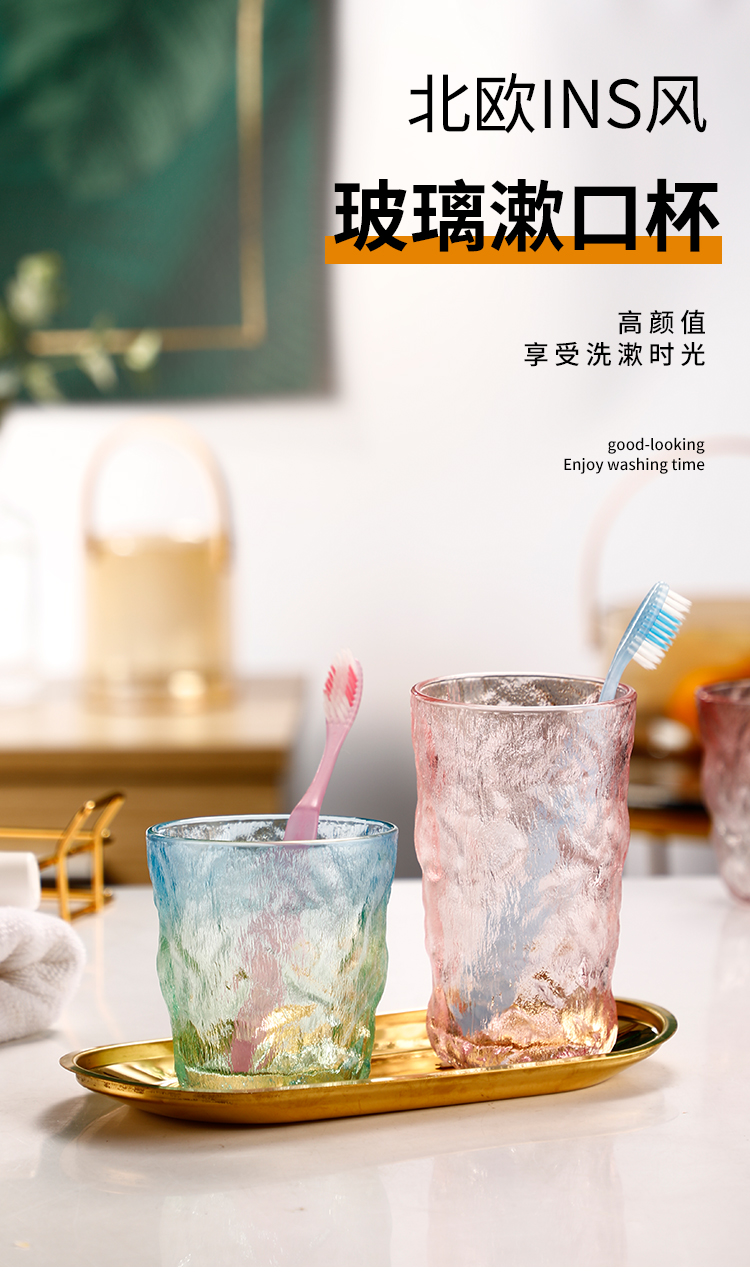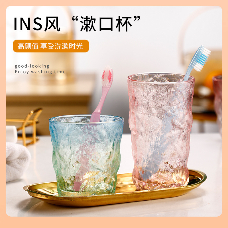 68Nins 스타일 호텔 가글 컵 빙하 유리 간단한 칫솔 컵 세트 치아 세척을위한 가정용 커플 칫솔 컵