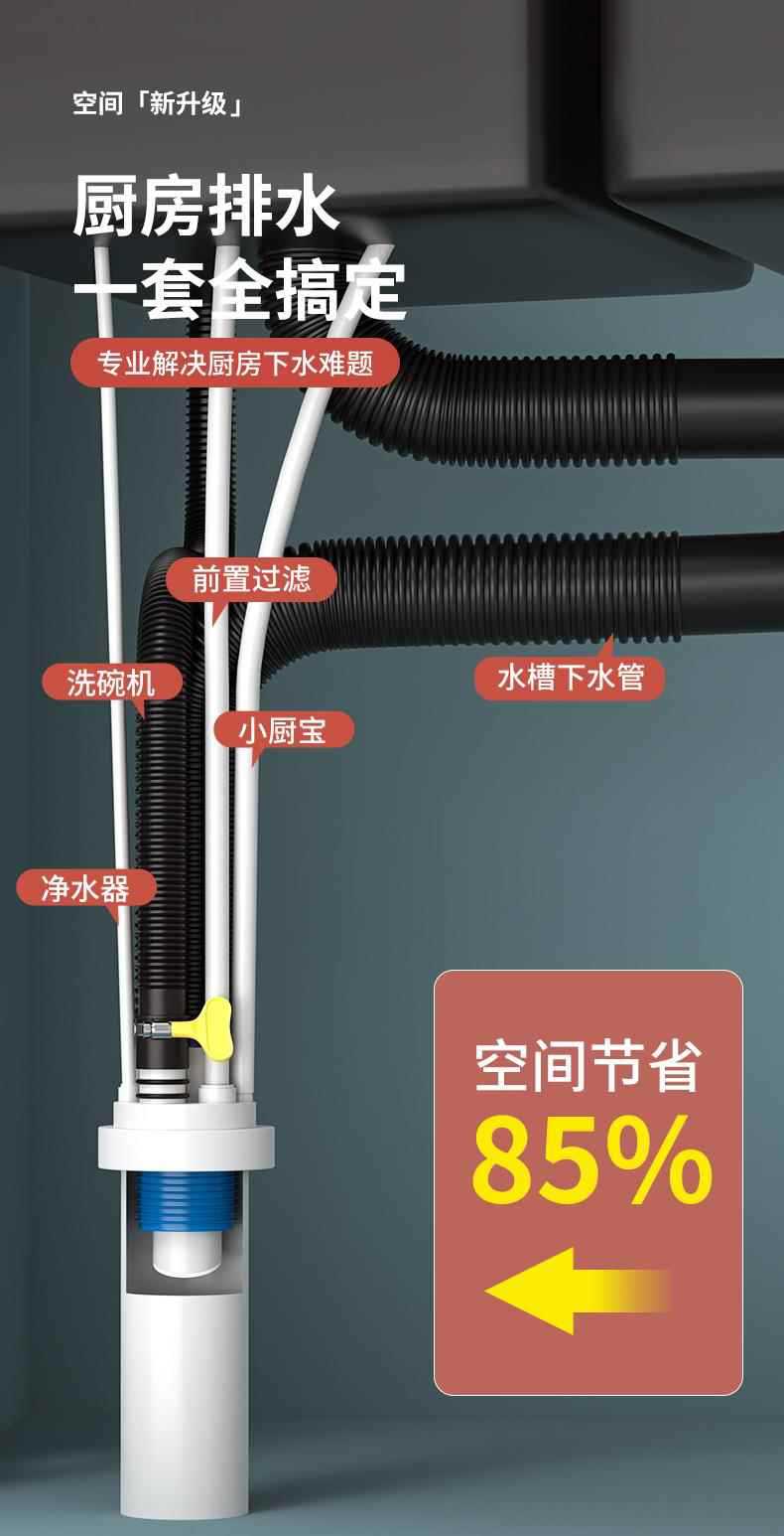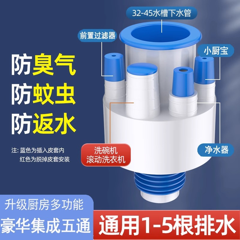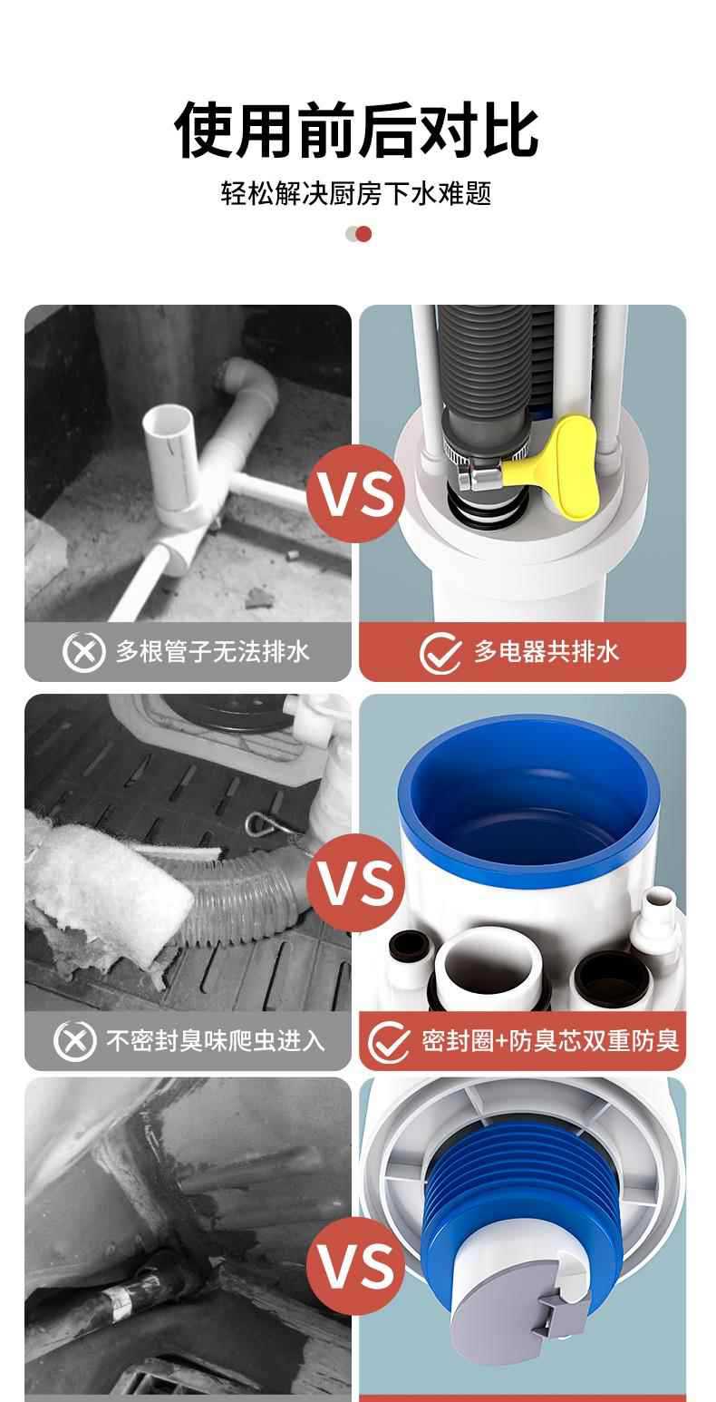 주방 하수관 삼중 연결부 싱크대 식기세척기 화장실 다기능 통합 배수관 악취 방지 장치스토어 가기