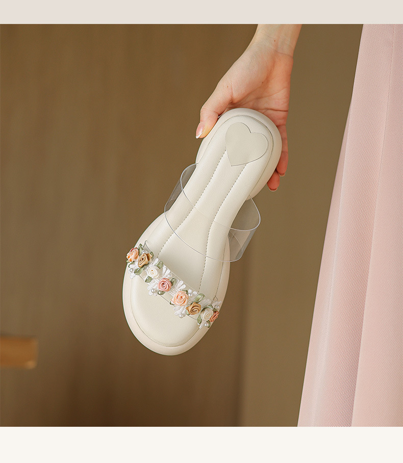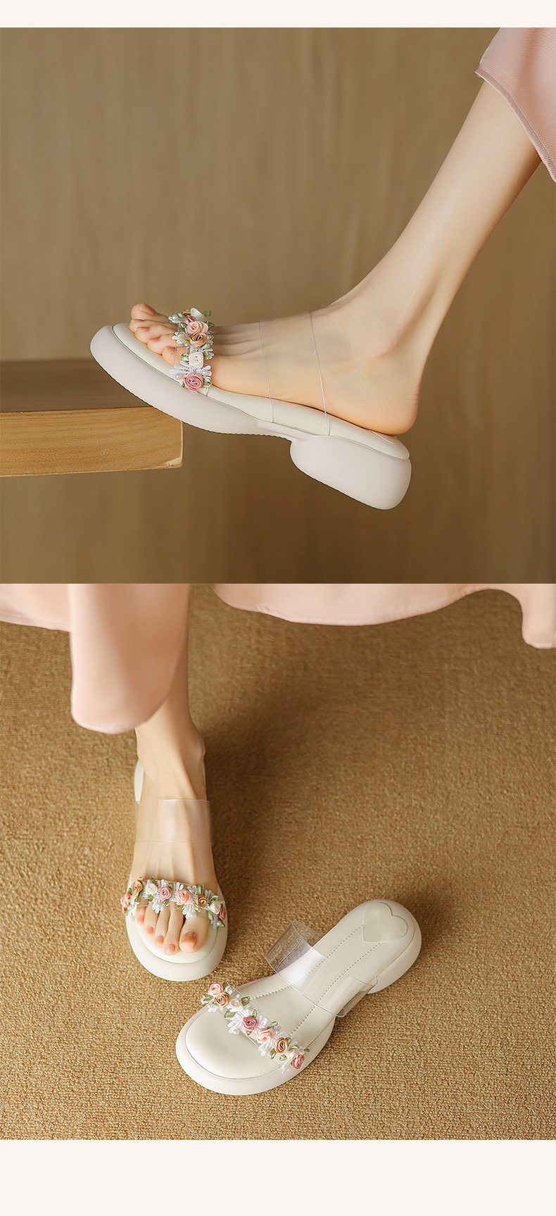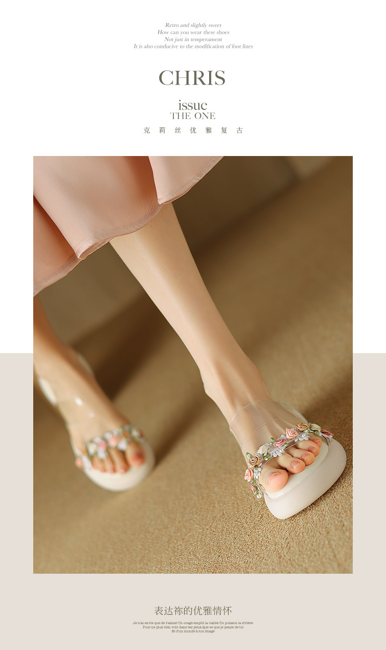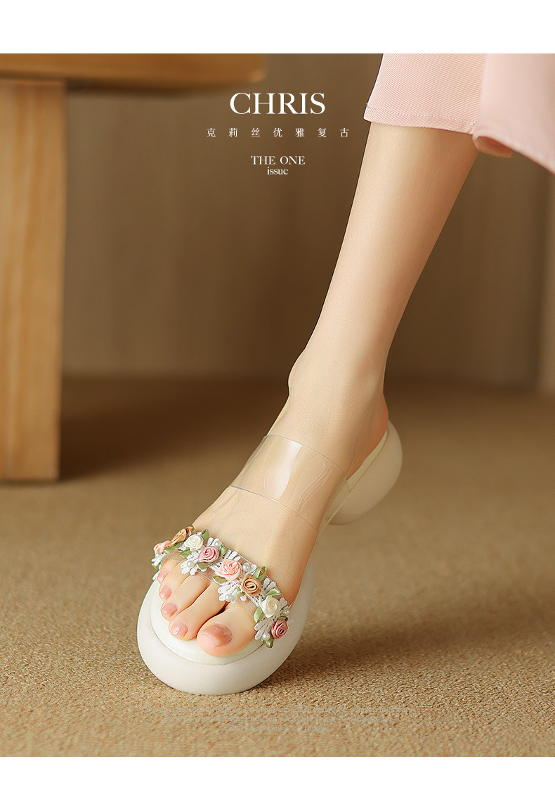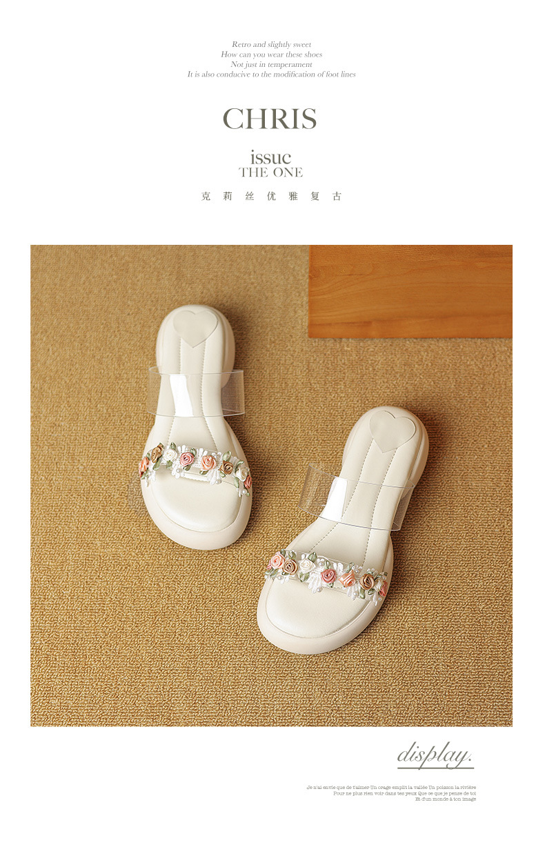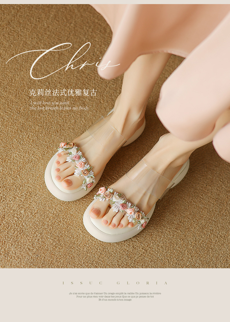 새로운 중국 스타일 국가 스타일 샌들과 슬리퍼 여성 여름 입고 프랑스 스타일 두꺼운 바닥 부드러운 밑바닥 치마와 함께 아름다운 투명 샌들