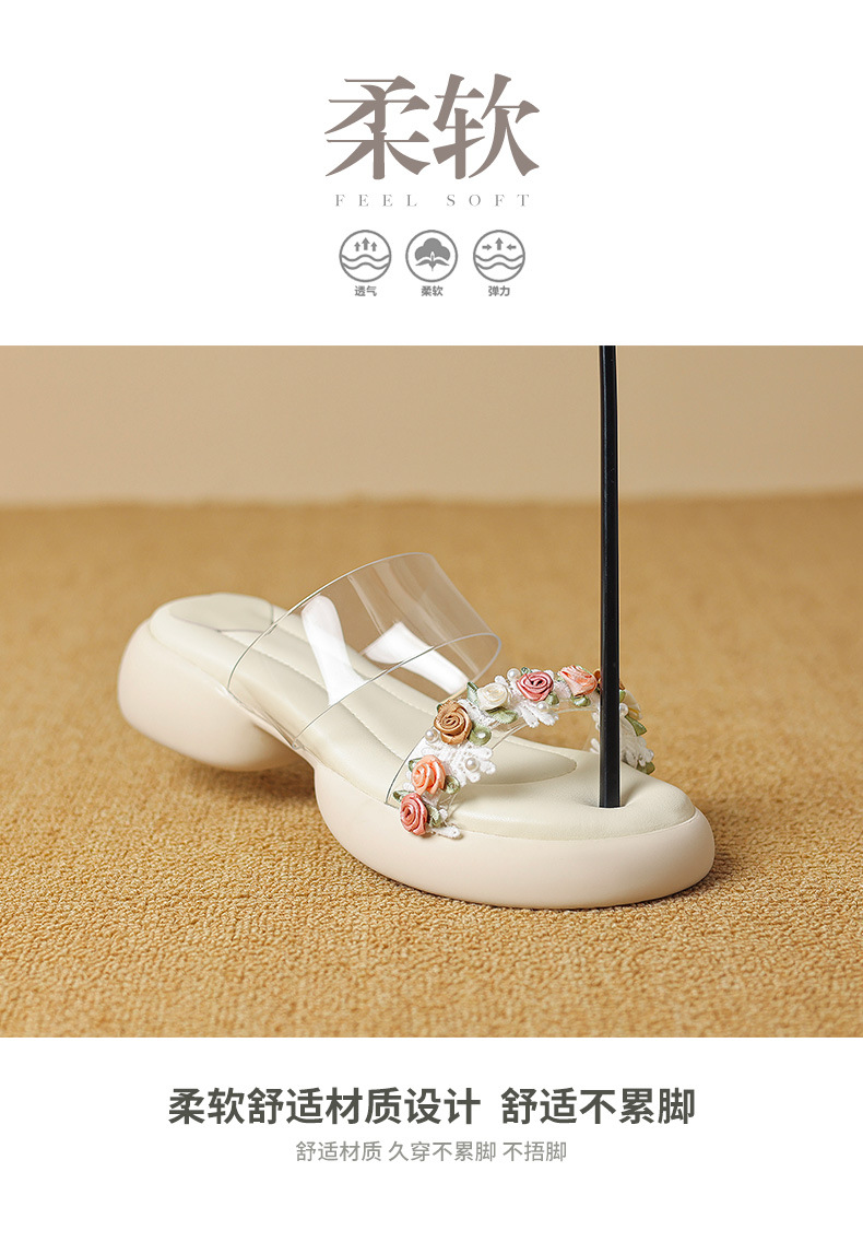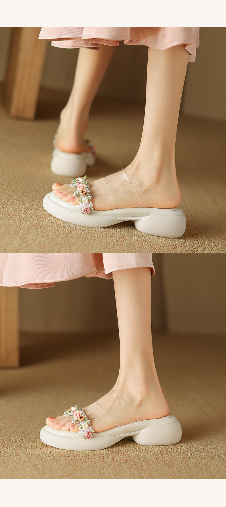 새로운 중국 스타일 국가 스타일 샌들과 슬리퍼 여성 여름 입고 프랑스 스타일 두꺼운 바닥 부드러운 밑바닥 치마와 함께 아름다운 투명 샌들스토어 가기