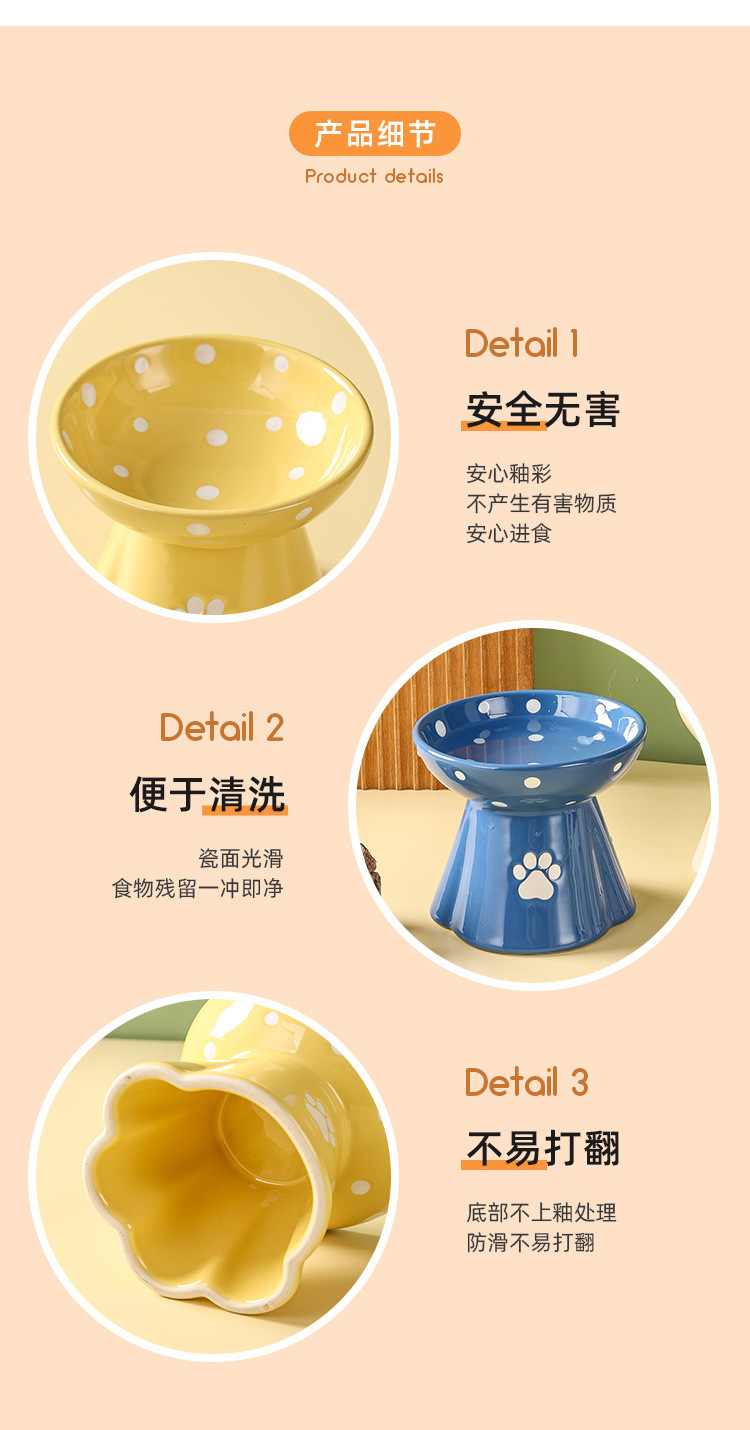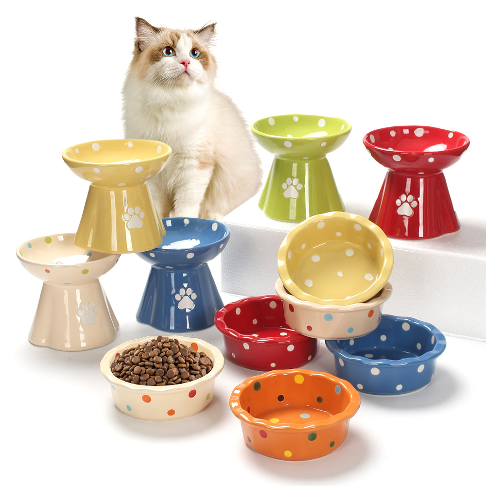 특가 판매 애완동물용 세라믹 그릇, 언더글레이즈 컬러 물방울 무늬 시리즈, 높은 다리가 있는 고양이 및 강아지 사료 그릇과 물그릇, 판매 완료 시 즉시 판매 종료스토어 가기