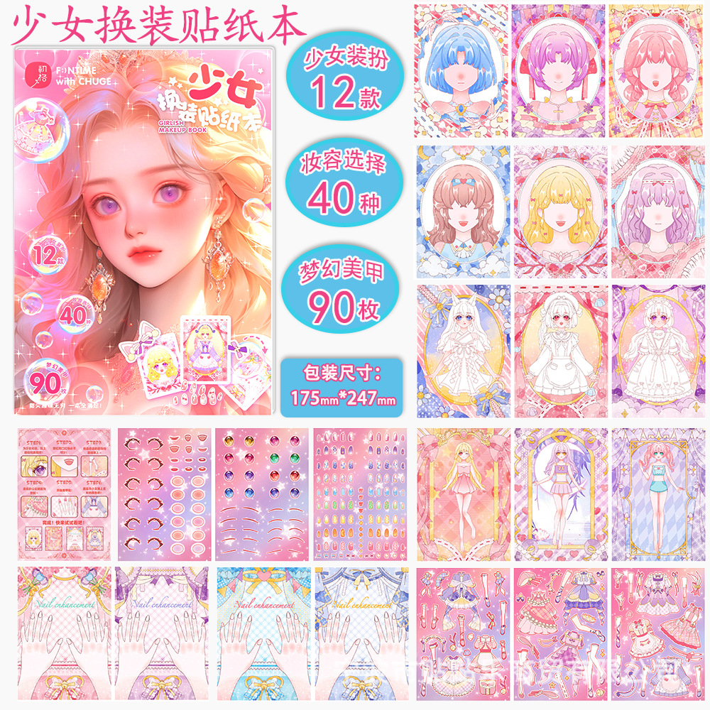소녀 공주 원피스 업 네일 살롱 뷰티 샵 조용한 책 컷 프리 스티커 색칠하기 책 DIY 소녀 장난감