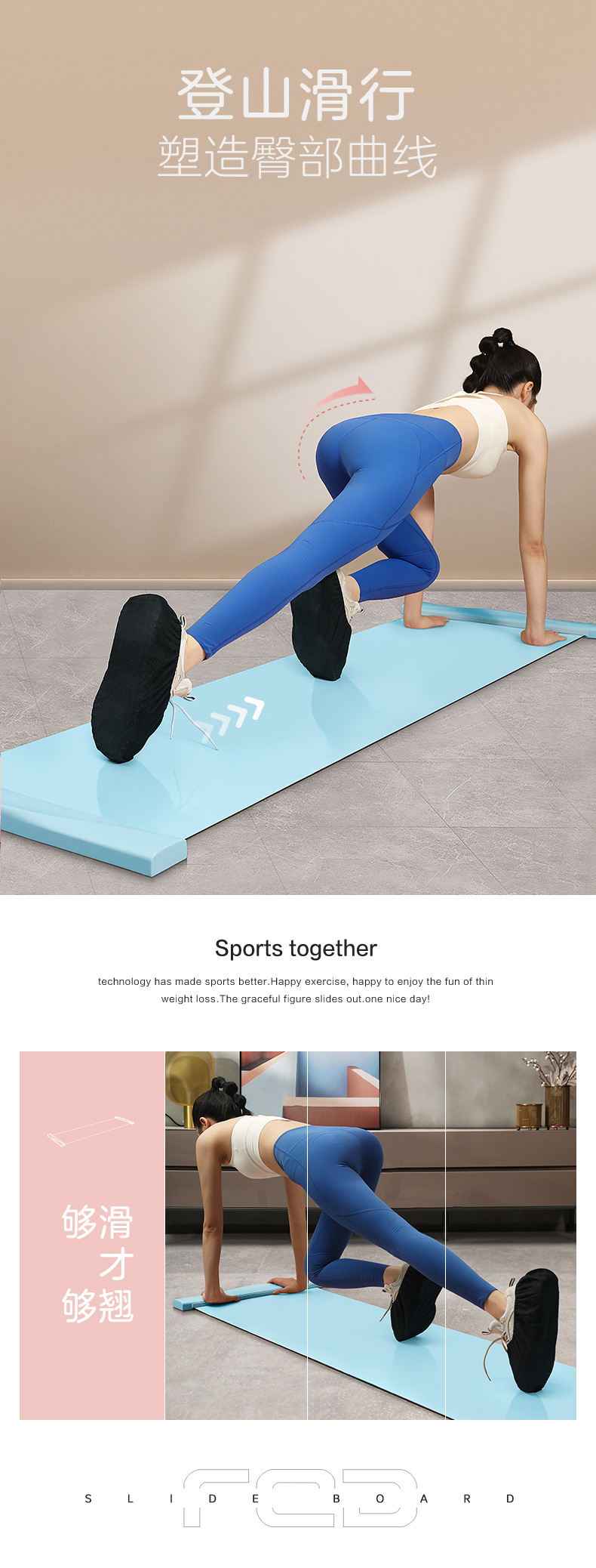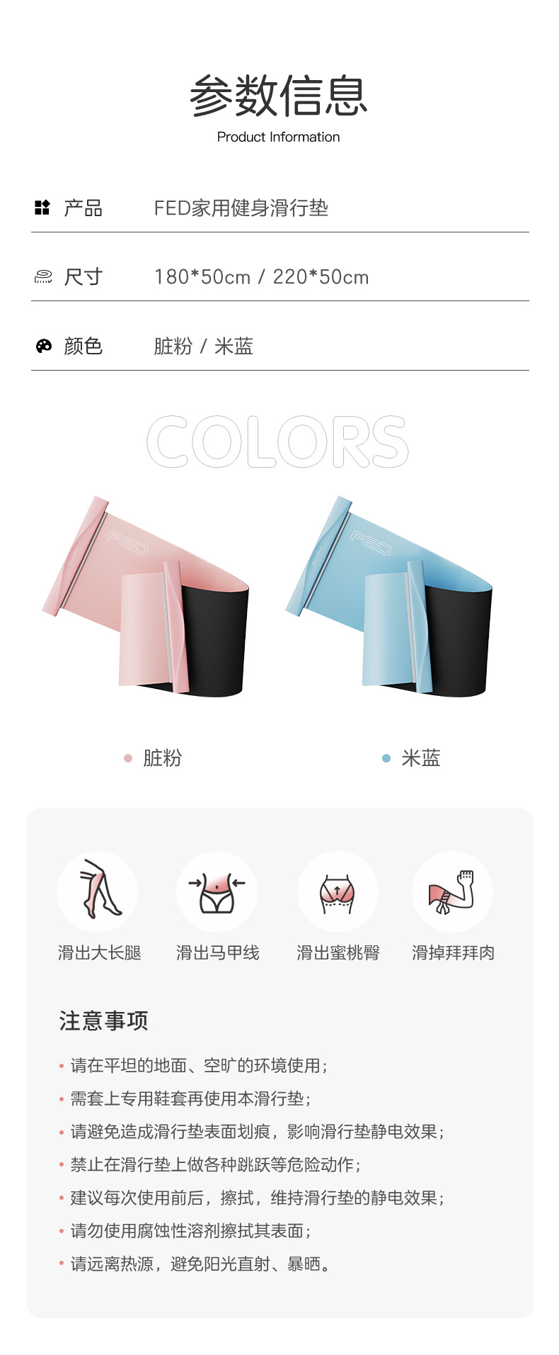 FED/飞尔顿家用健身滑行垫二代·丝滑:1.8M/2.2M/1.8M暴汗套装/1.8米护膝套装 到手价>=109/119/159/179元