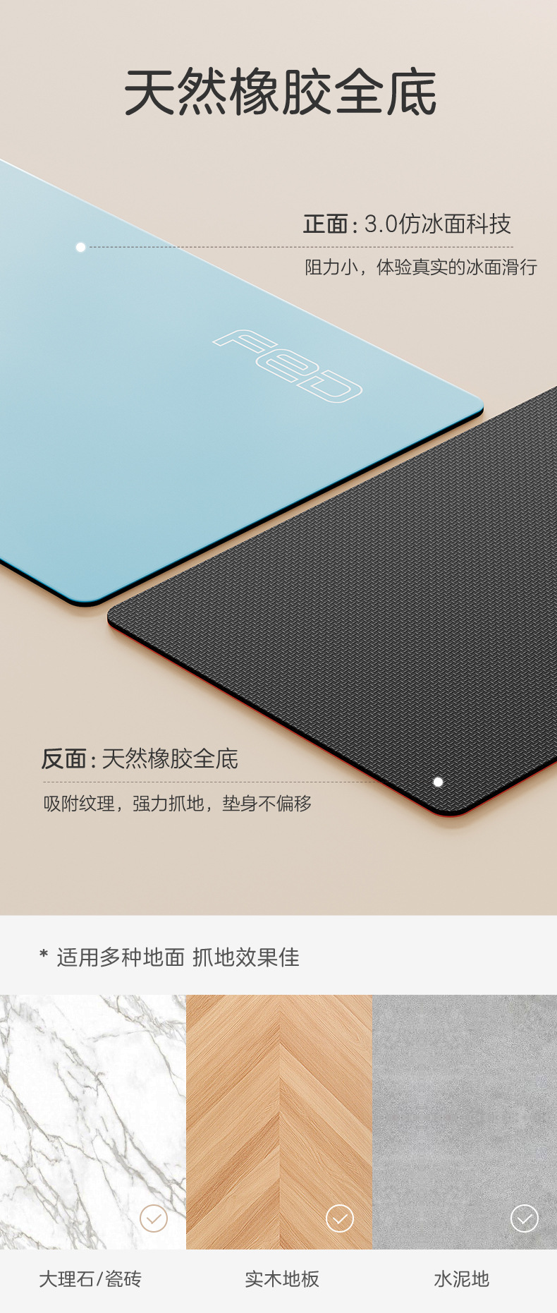 FED/飞尔顿家用健身滑行垫一代·耐磨:1.4M/1.8M/1.8M暴汗套装 到手价>=59/79/129元
