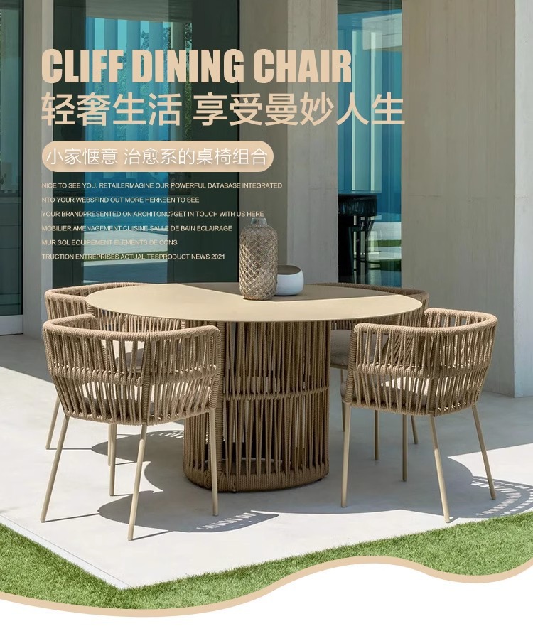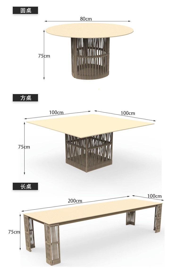 야외 등나무 테이블 및 의자 발코니 안뜰 정원 창조적 인 레저 의자 야외 야외 야외 야외 레스토랑 테이블 방수 선 스크린