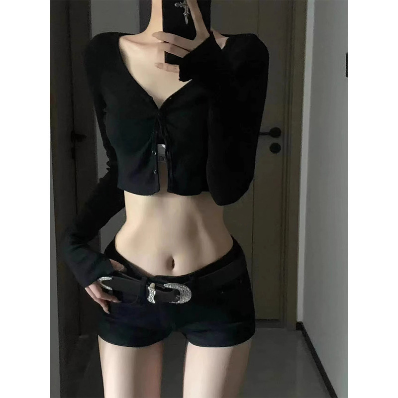 미국 스타일의 뜨거운 소녀 높은 허리 타이트 스트레이트 데님 반바지 여성 여름 새로운 슬리밍 짧은 검은 엉덩이 핫 팬츠 트렌디스토어 가기