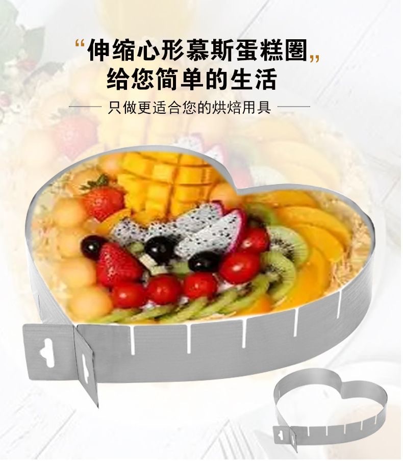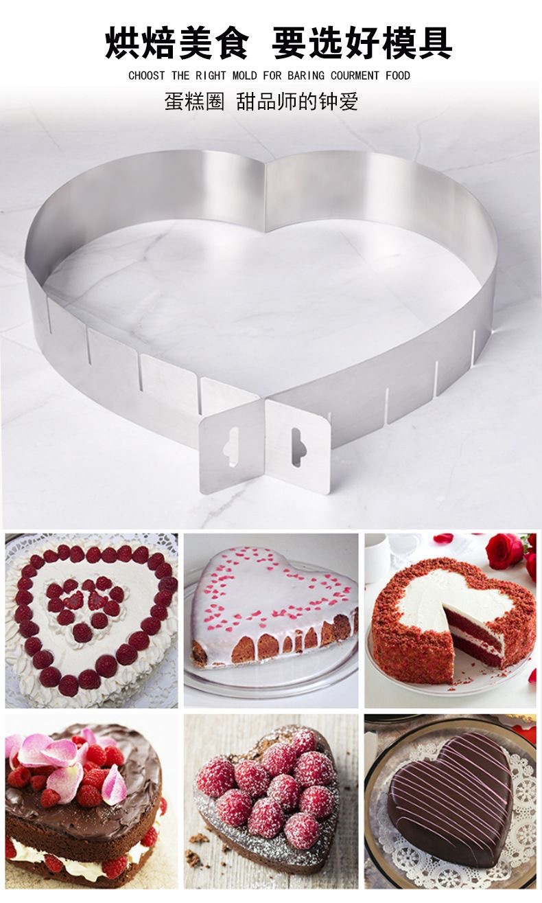 재고 있음 텔레스코픽 스테인레스 스틸 하트 모양의 무스 링 리프팅 케이크 무스 몰드 치즈 베이킹 쿠키 12 조절 가능