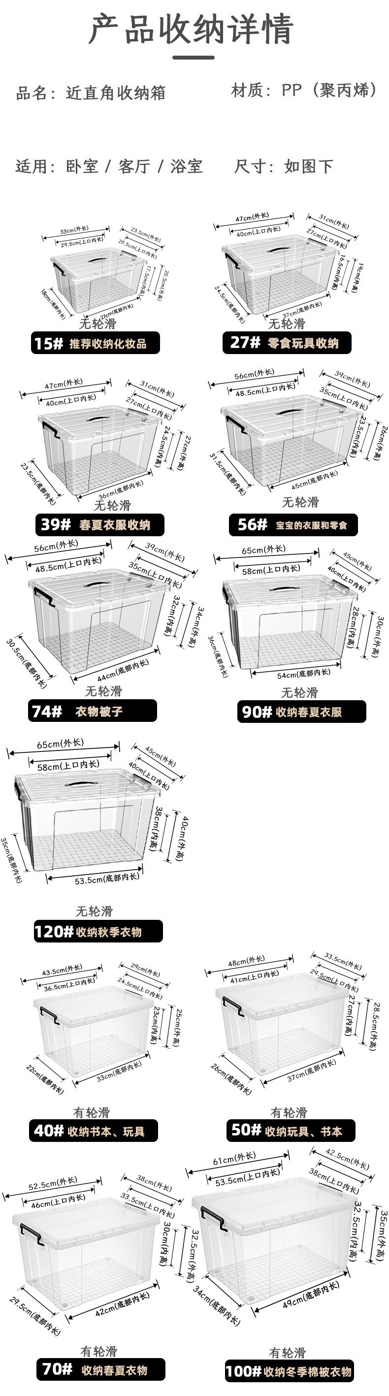가까운 직각 옷 플라스틱 보관 상자 도매 뚜껑 대형 저장 침대 바닥 마무리 상자 투명 저장 상자 이동스토어 가기