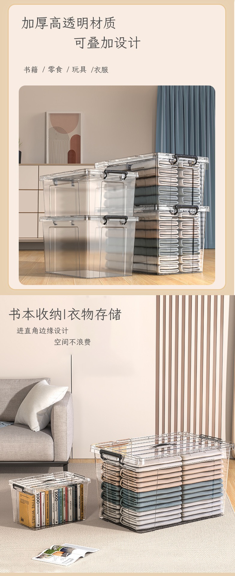 가까운 직각 옷 플라스틱 보관 상자 도매 뚜껑 대형 저장 침대 바닥 마무리 상자 투명 저장 상자 이동