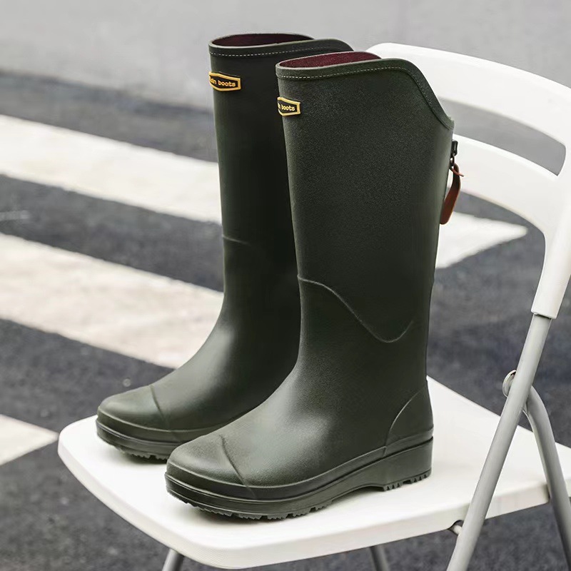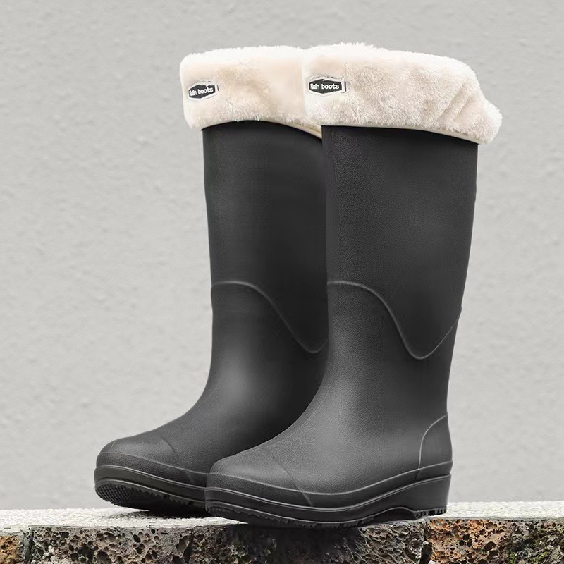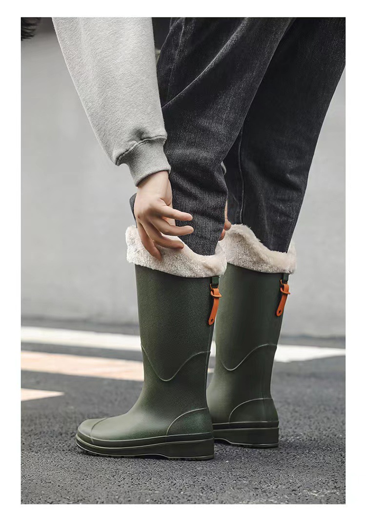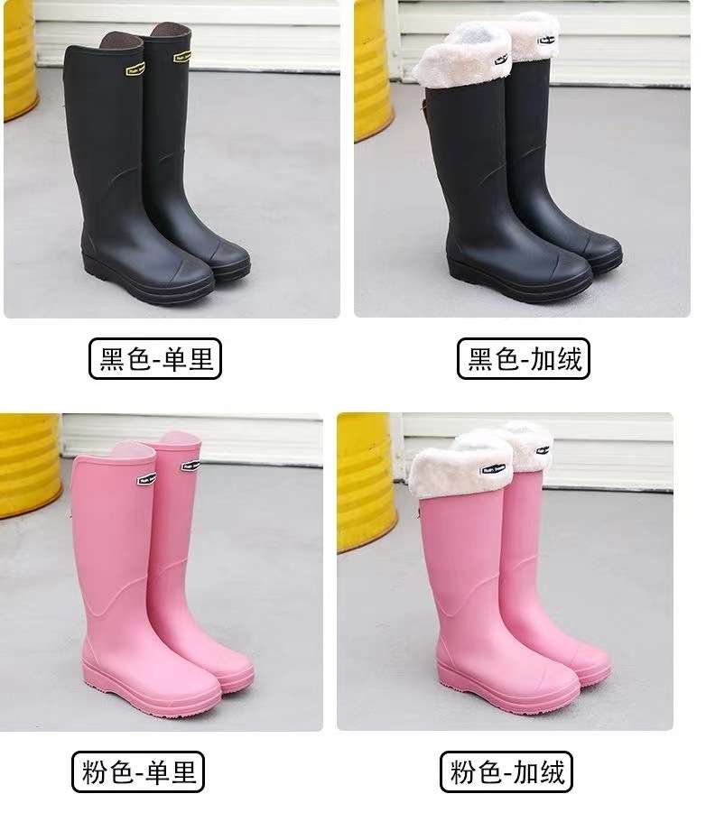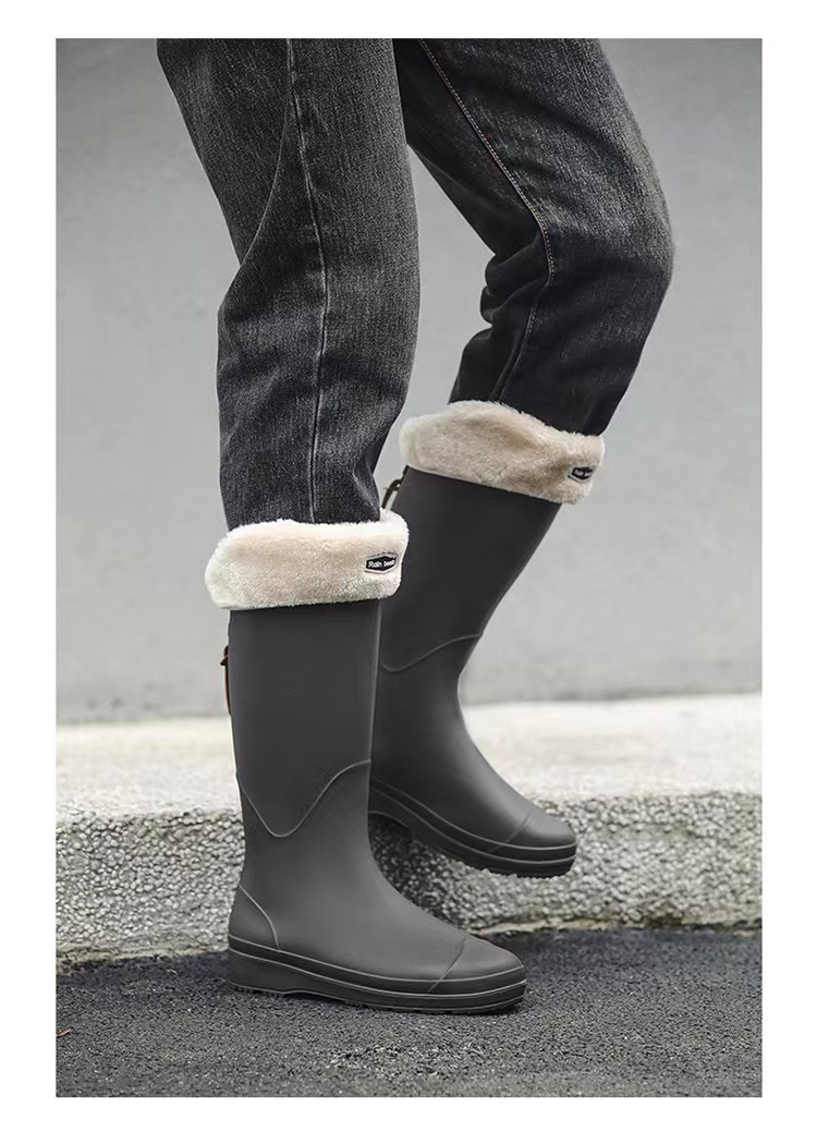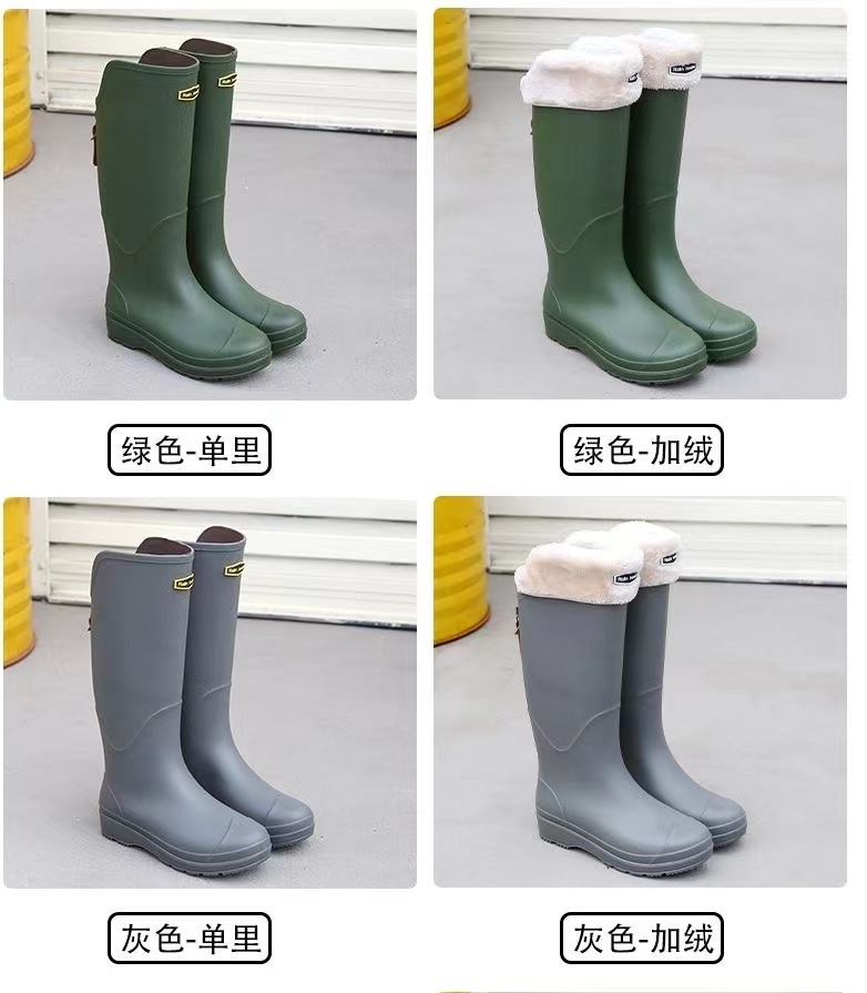 남성과 여성을위한 높은 장화 수출 새로운 야외 두꺼운 바닥 비 부츠 긴 부츠를 기모 남성용 미끄럼 방지 워터 슈즈
