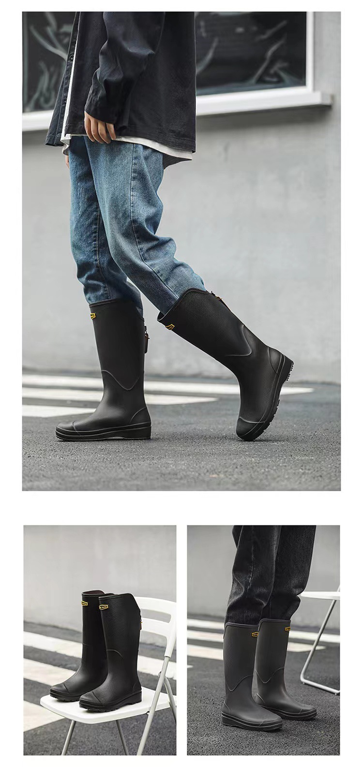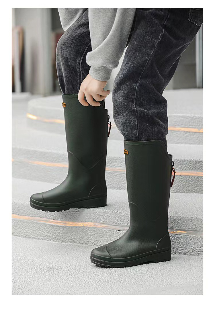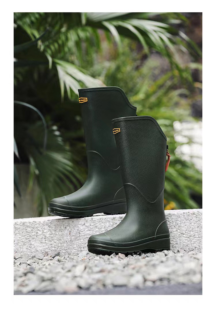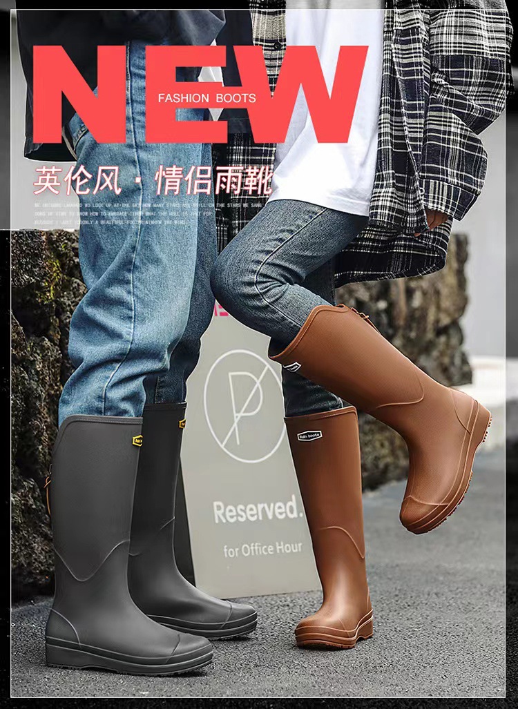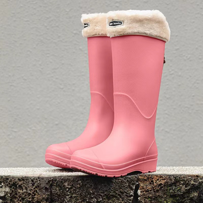 남성과 여성을위한 높은 장화 수출 새로운 야외 두꺼운 바닥 비 부츠 긴 부츠를 기모 남성용 미끄럼 방지 워터 슈즈