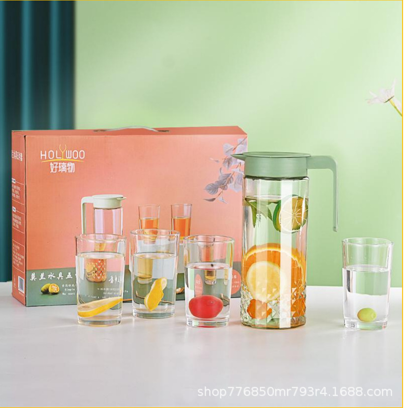 좋은 유리 모란 물 세트 5 조각 유리 물 세트 1 냄비 4 컵 세트 홈 광고 프로모션 복지 선물스토어 가기
