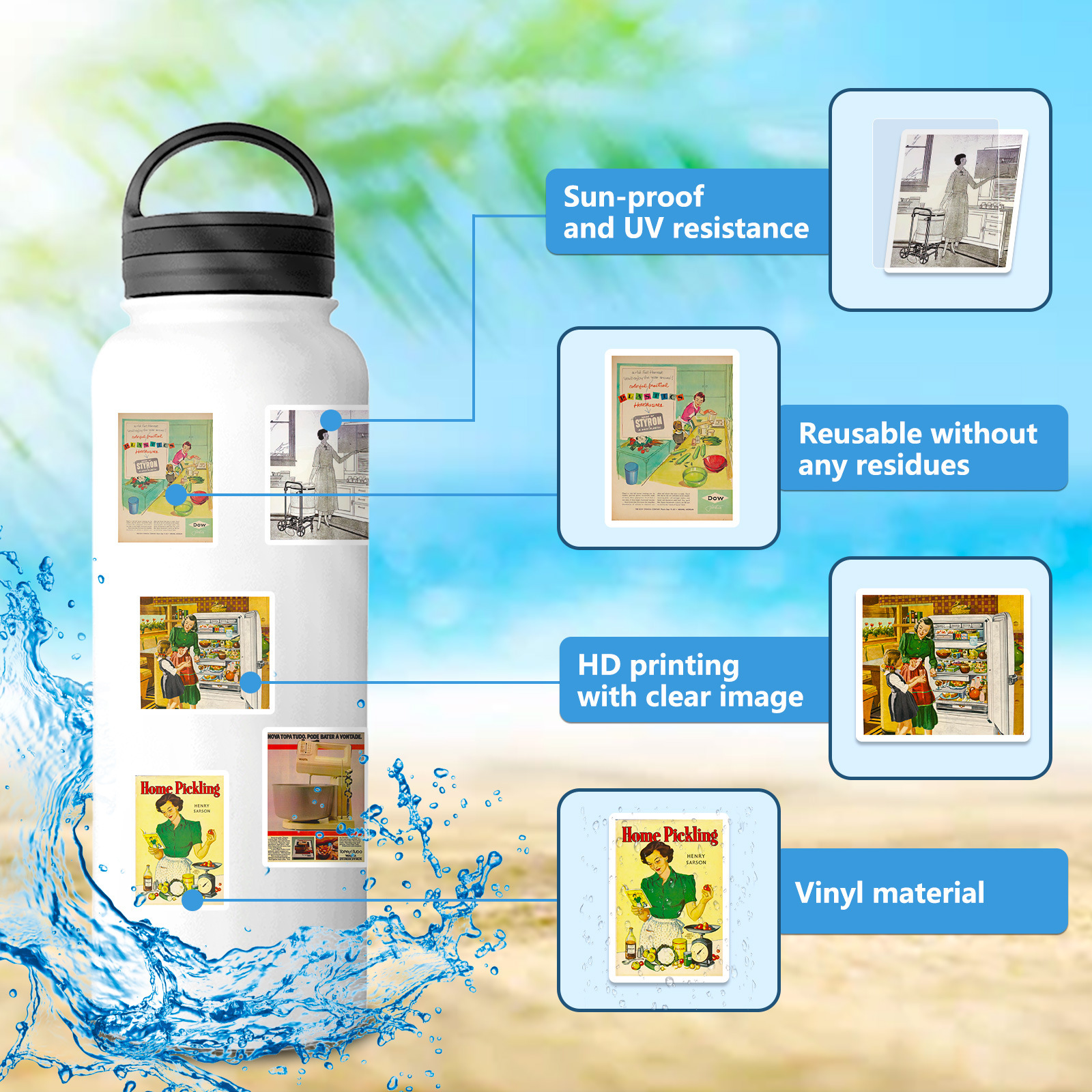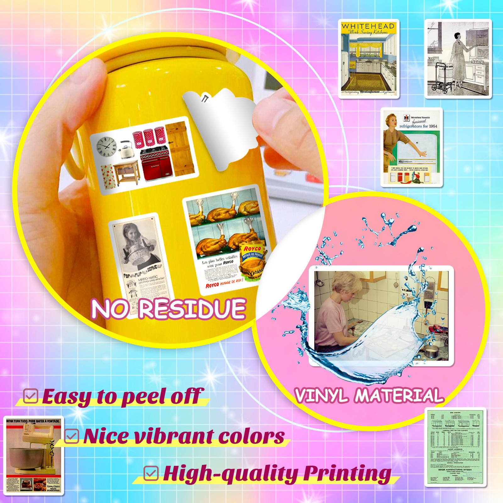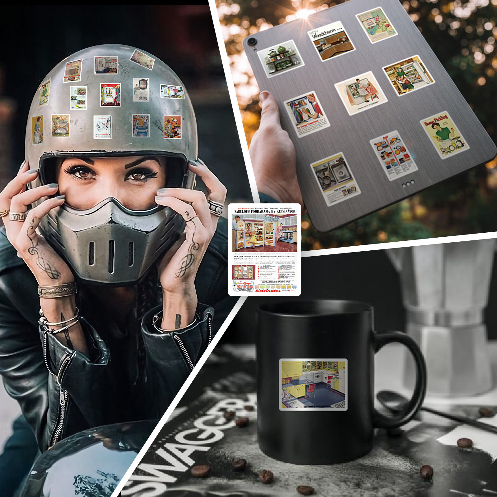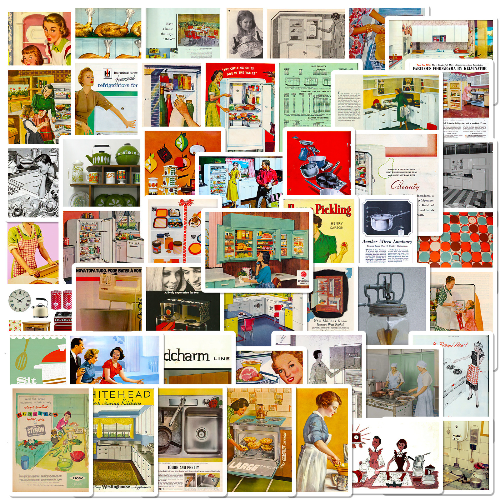 50 복고풍 소녀 포스터 잡지 바람 낙서 음식 스티커 DIY 물 컵 자동차 장식 스티커 국경스토어 가기
