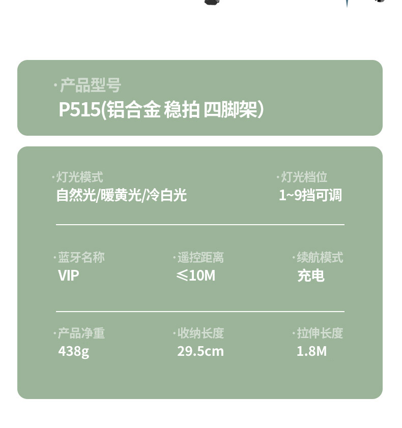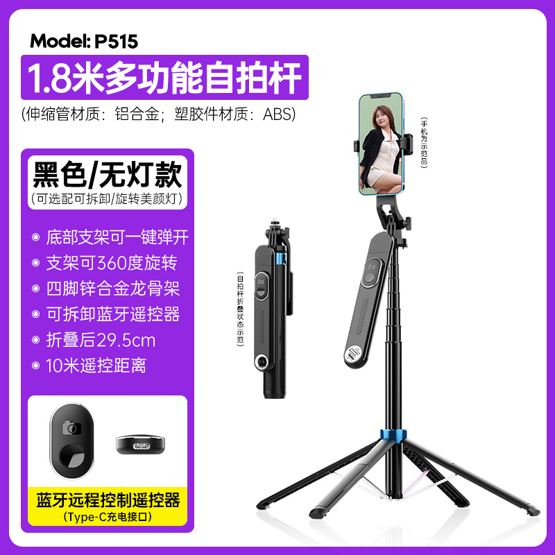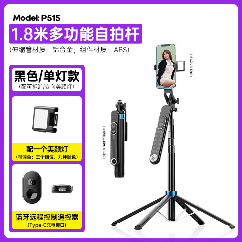 • P515-V1 셀카 스틱 블루투스 셀카/1.8 m/알루미늄 합금/단일 램프