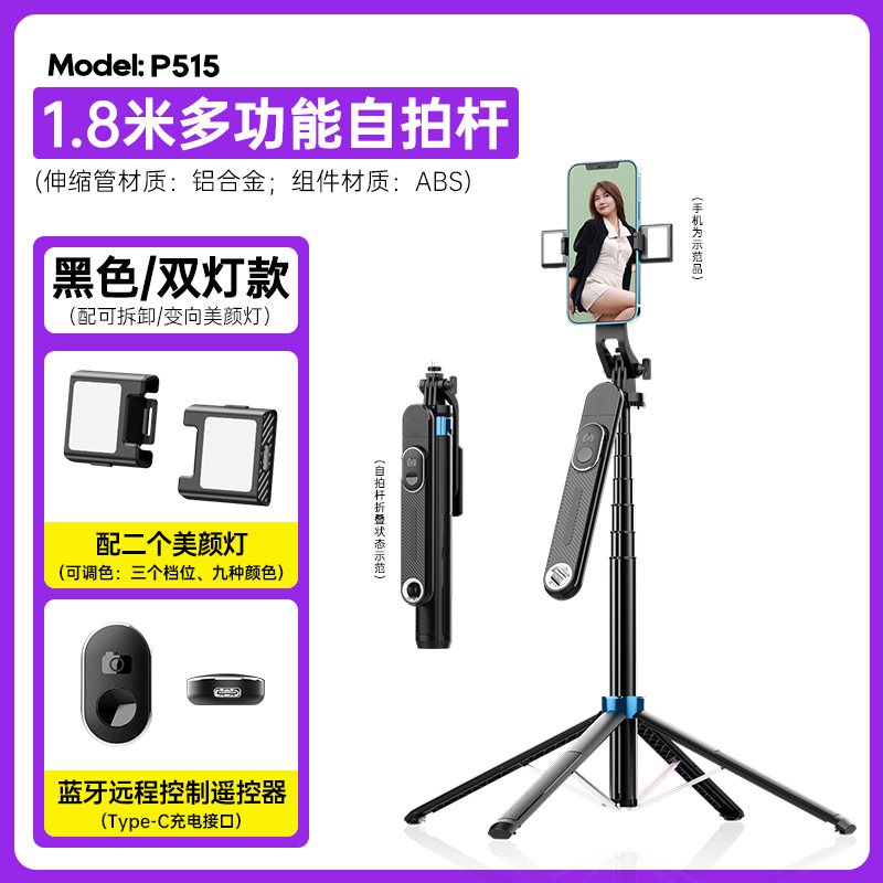 • P515-V2 셀카 스틱 블루투스 셀카/1.8 m/알루미늄 합금/더블 라이트