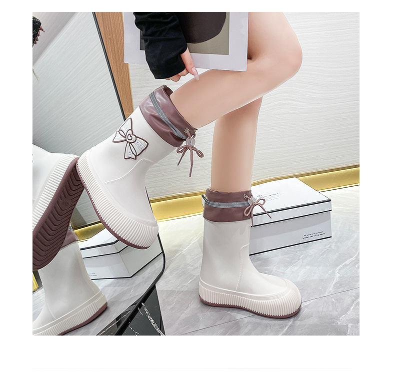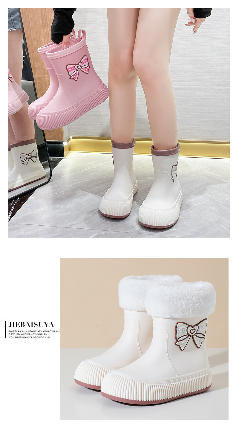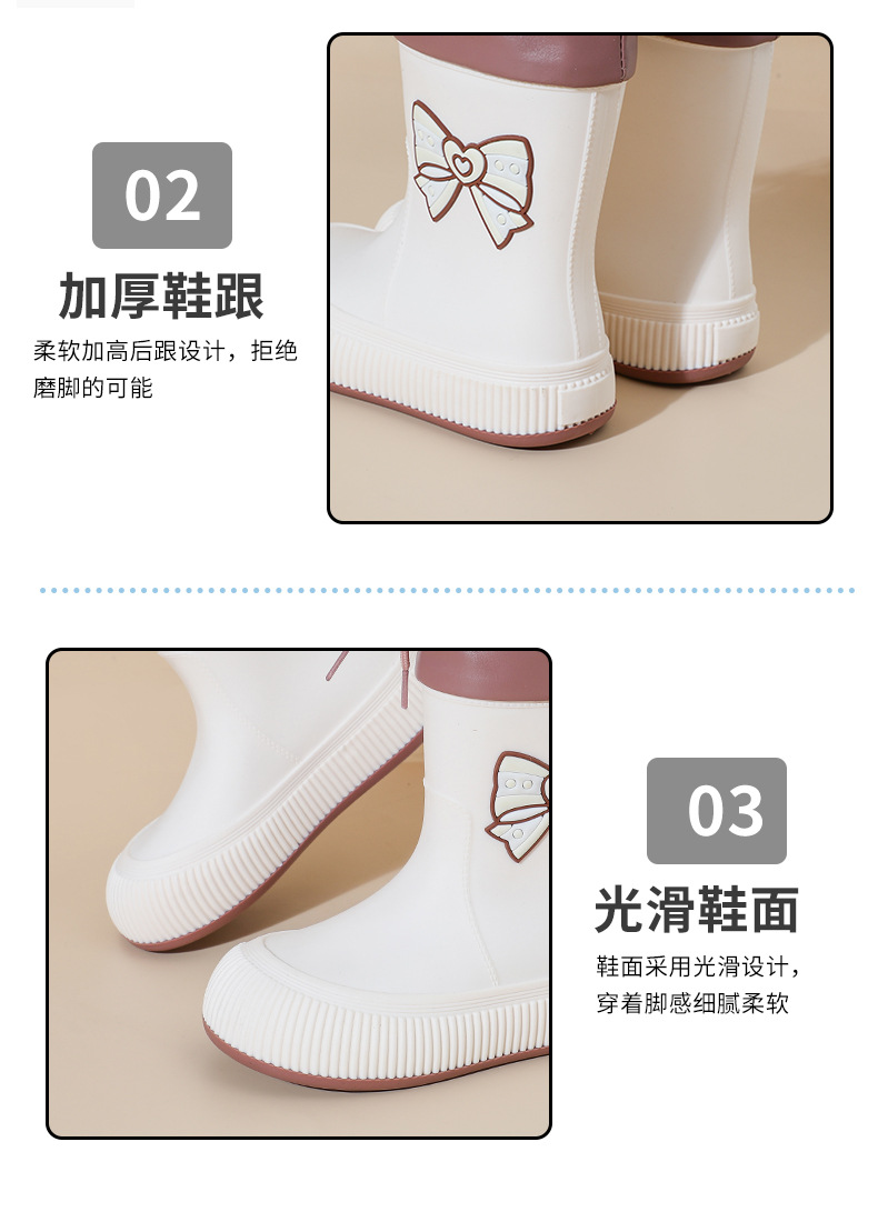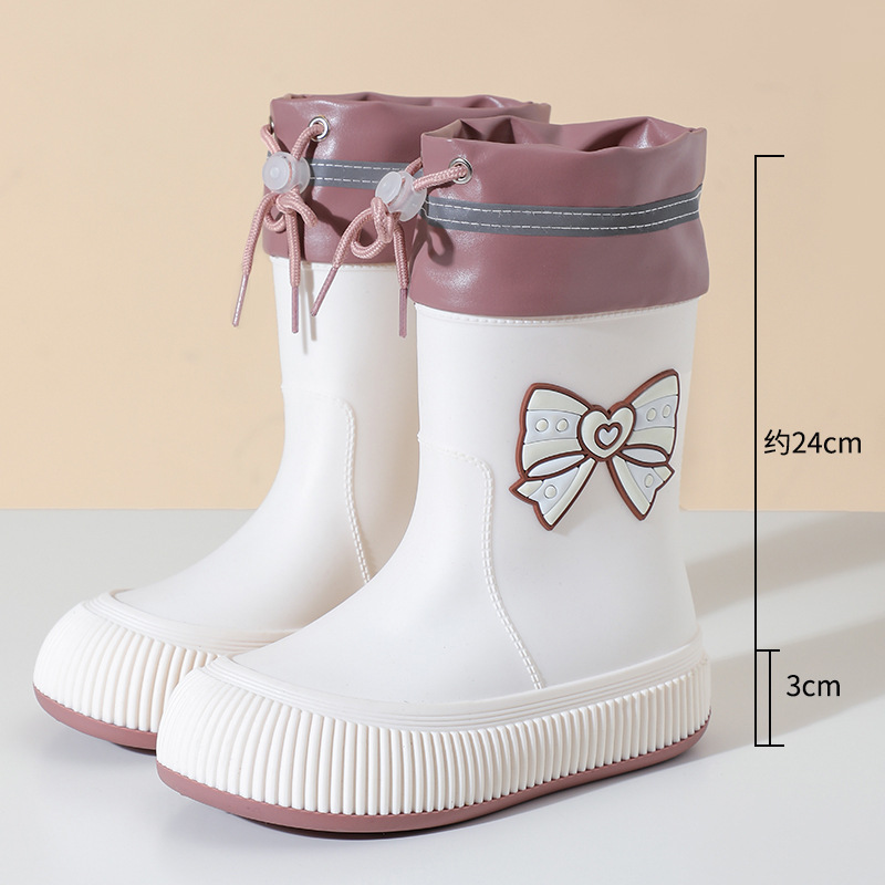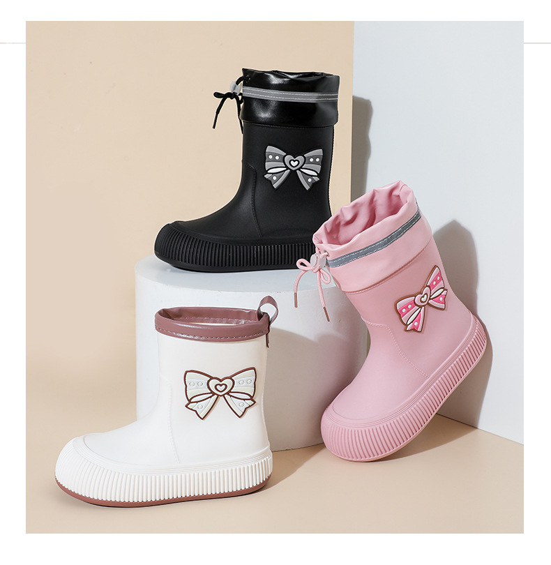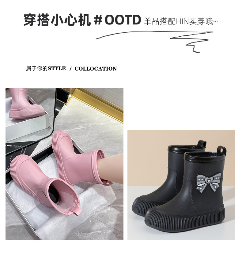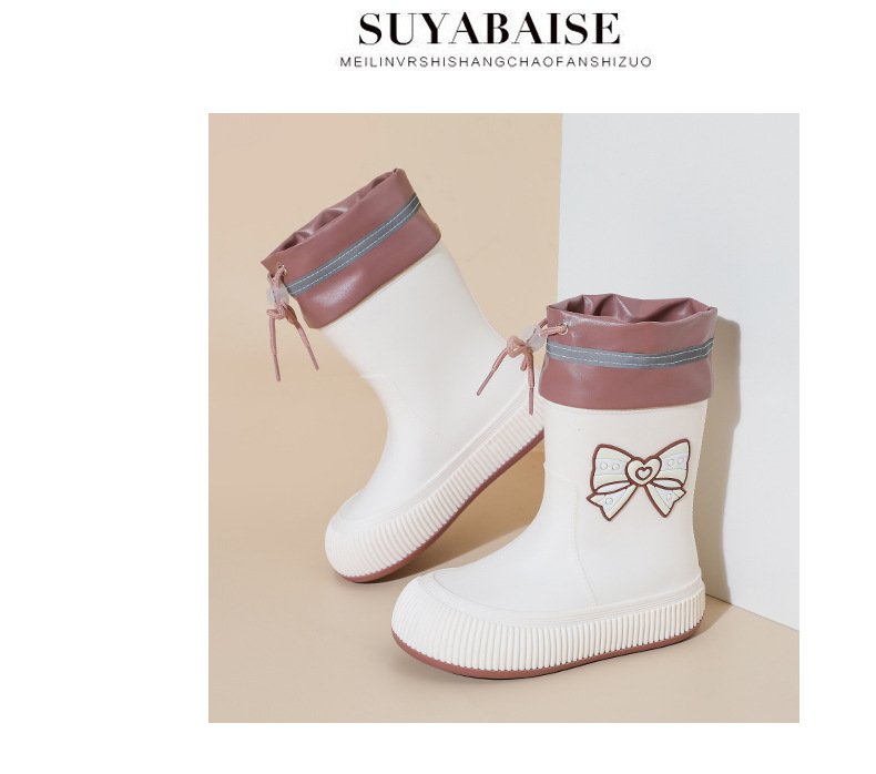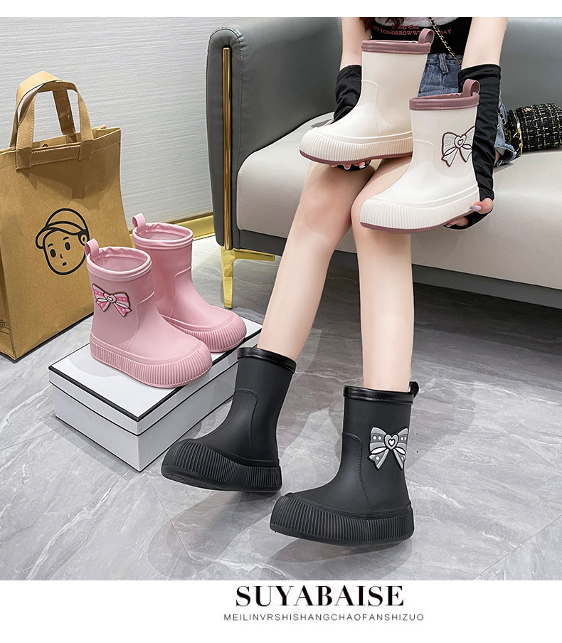 중간 튜브 나비 여성의 2024 장우 장화 성인 방수 미끄럼 방지 새로운 패션 긴 튜브 고무 신발 내마모성 수화스토어 가기