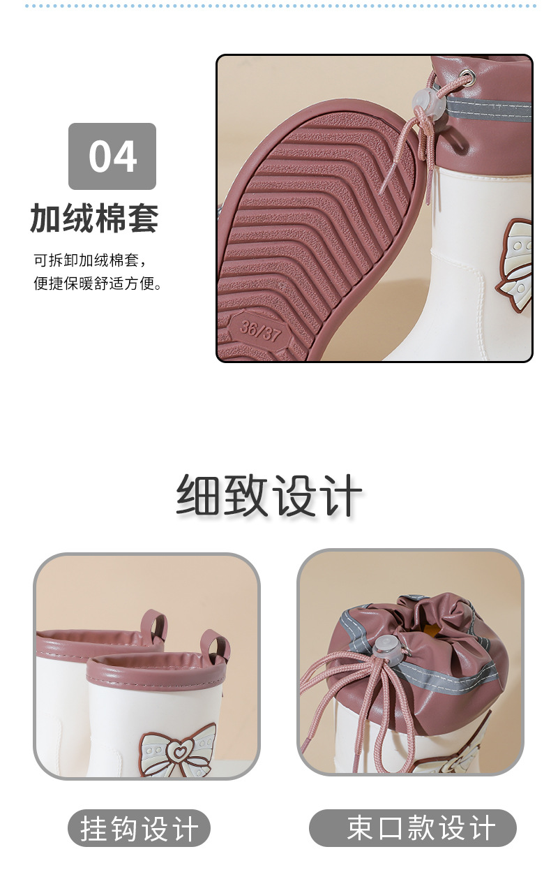 중간 튜브 나비 여성의 2024 장우 장화 성인 방수 미끄럼 방지 새로운 패션 긴 튜브 고무 신발 내마모성 수화