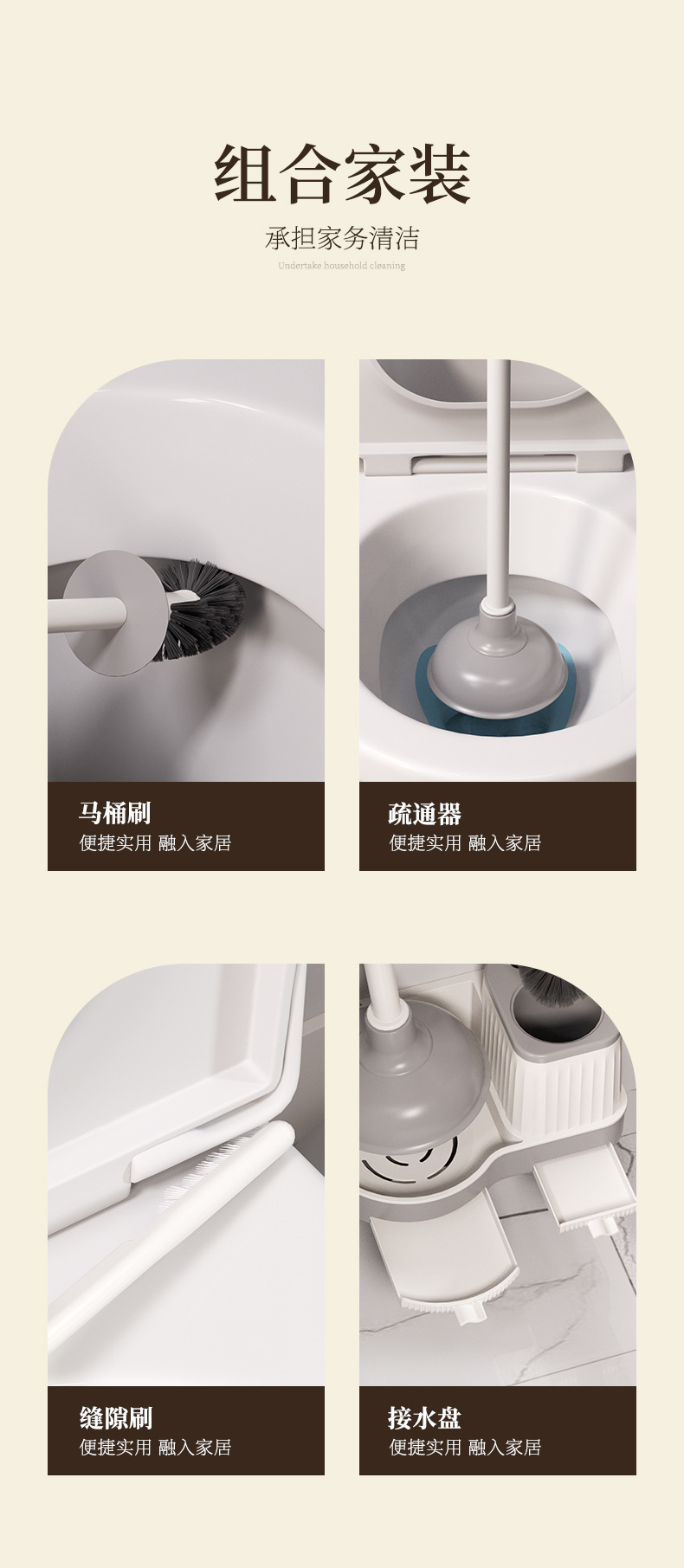 화장실 브러시와 변기 마개 세트, 깨끗한 무사각 화장실 벽걸이형 가정용 화장실 청소 세트 도매