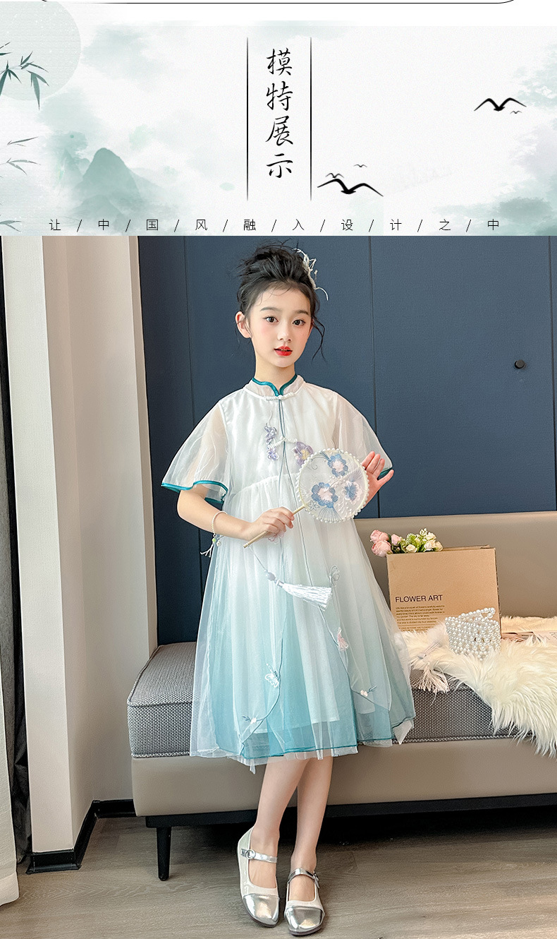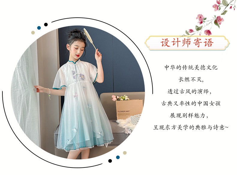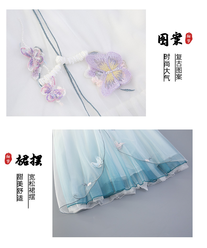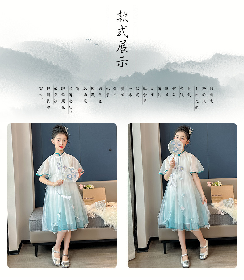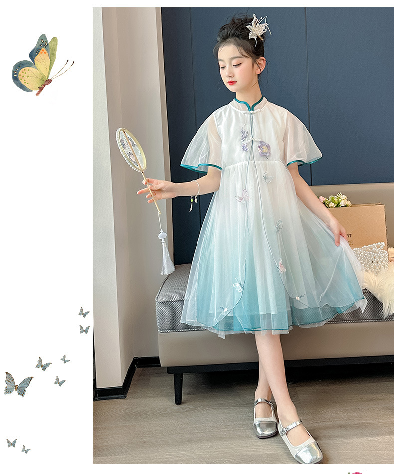소녀의 큰 소년 한푸 원피스 2024 새로운 여름 복고풍 클래식 소녀의 달콤한 Guofeng 그라디언트 나비 원피스스토어 가기