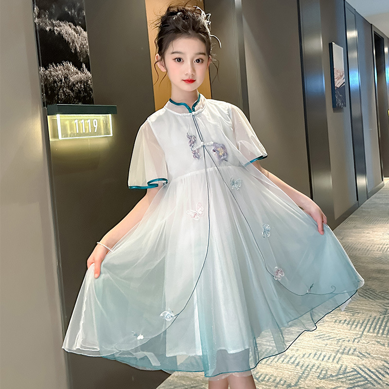 소녀의 큰 소년 한푸 원피스 2024 새로운 여름 복고풍 클래식 소녀의 달콤한 Guofeng 그라디언트 나비 원피스