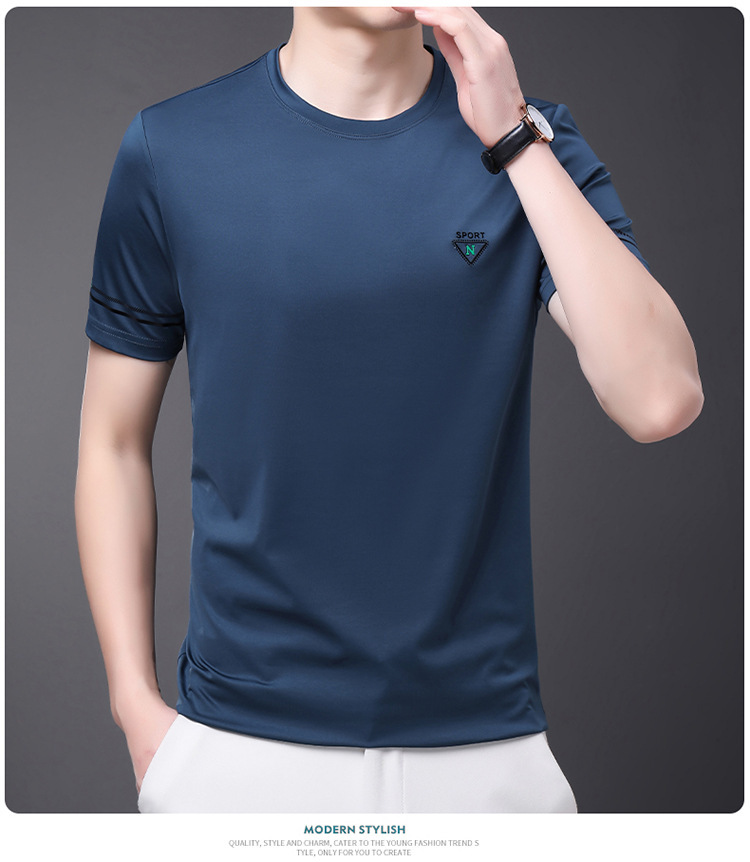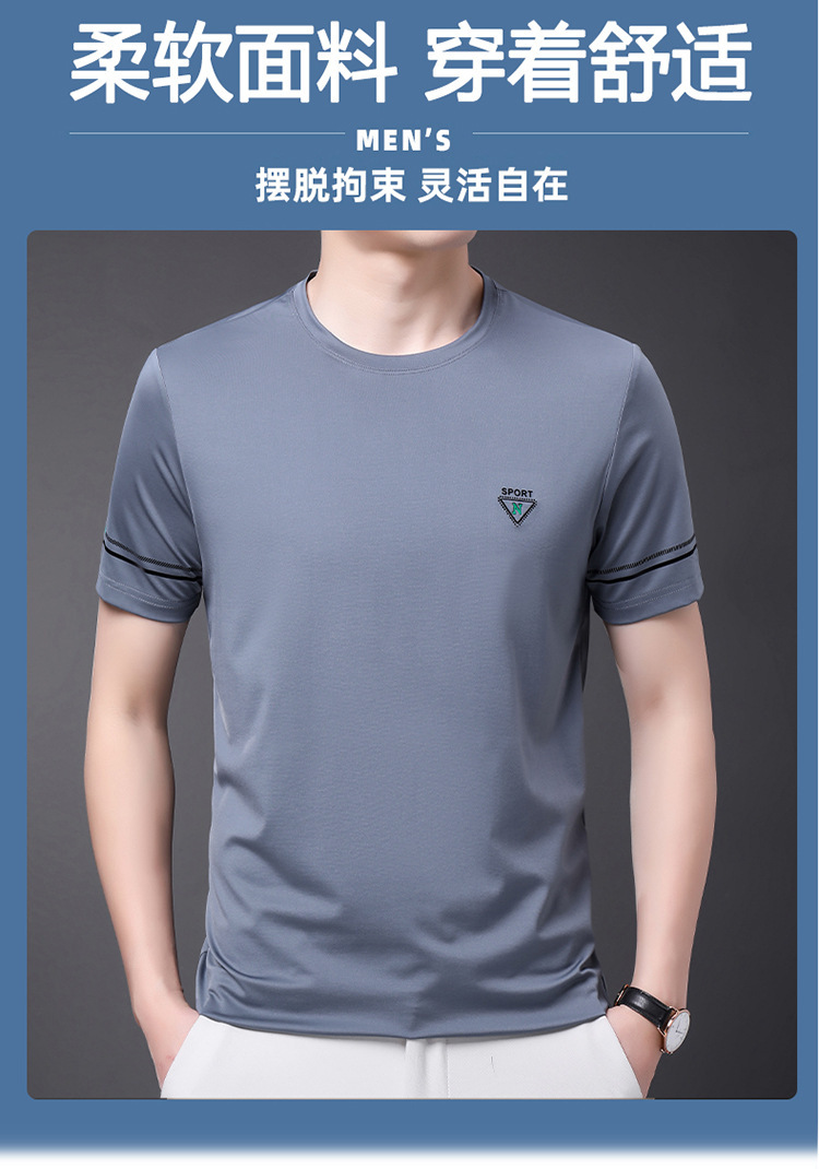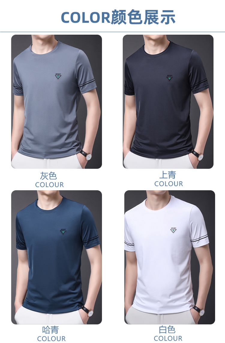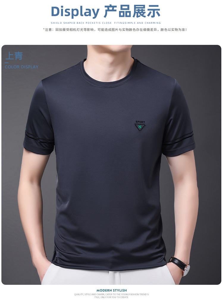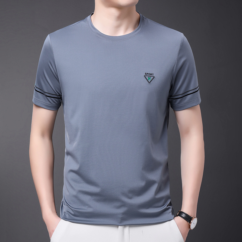 남자 티셔츠 2024 여름 새로운 하이 엔드 라운드 넥 중년 남성 비 다림질 캐주얼 남성 멀 베리 실크 탑스토어 가기