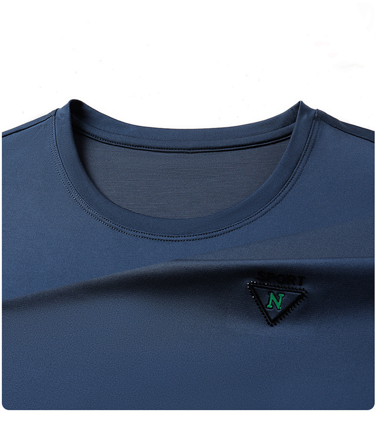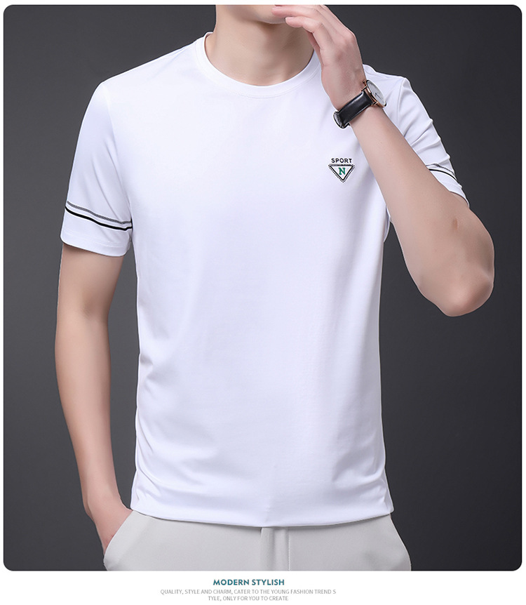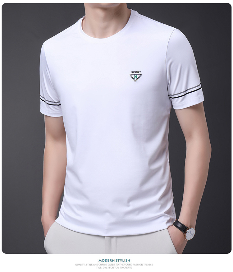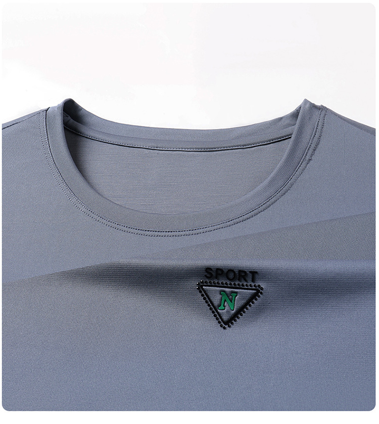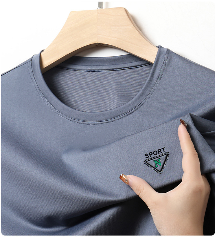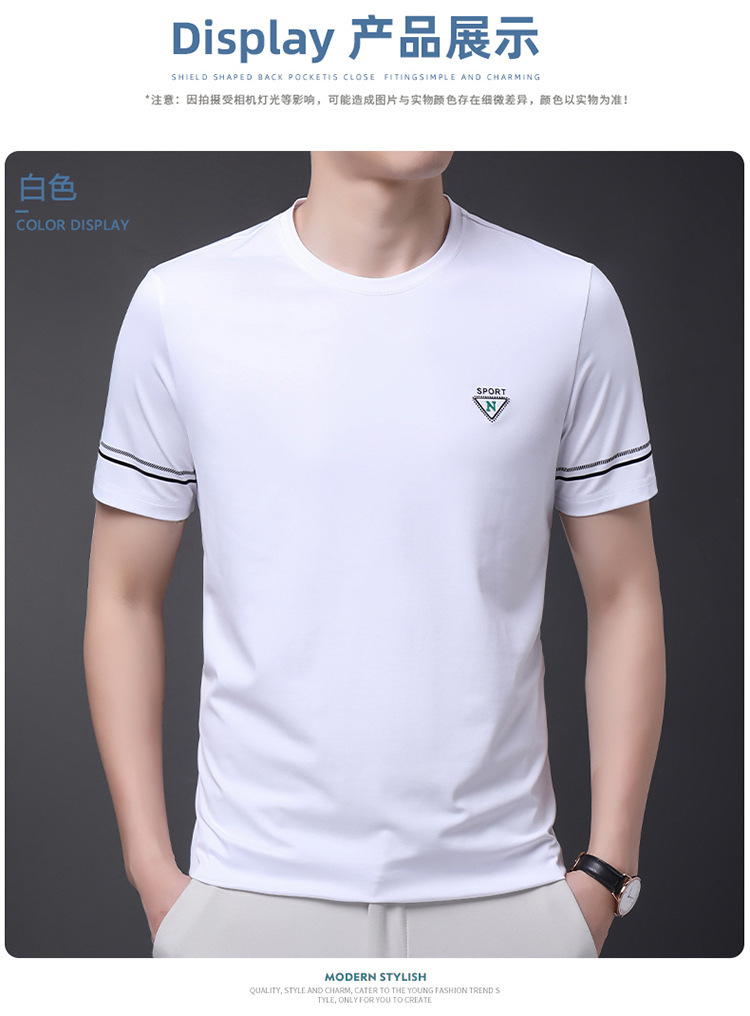 남자 티셔츠 2024 여름 새로운 하이 엔드 라운드 넥 중년 남성 비 다림질 캐주얼 남성 멀 베리 실크 탑스토어 가기