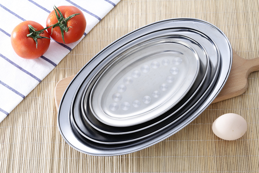 스테인레스 스틸 계란 모양의 접시 생선 접시 쌀 그릇 접시 타원형 접시 생선 접시 찐 생선 접시 레스토랑 바베큐