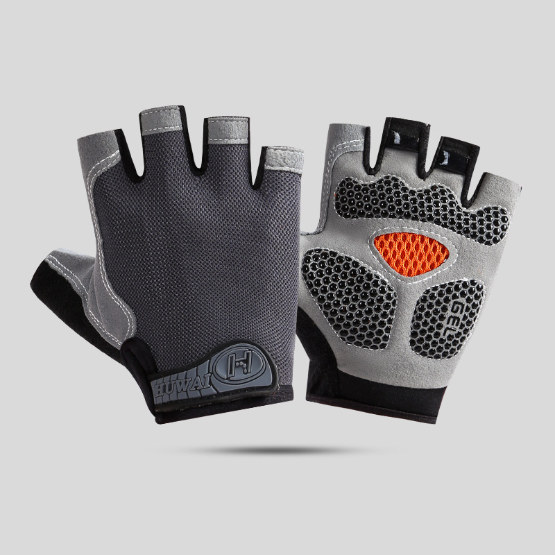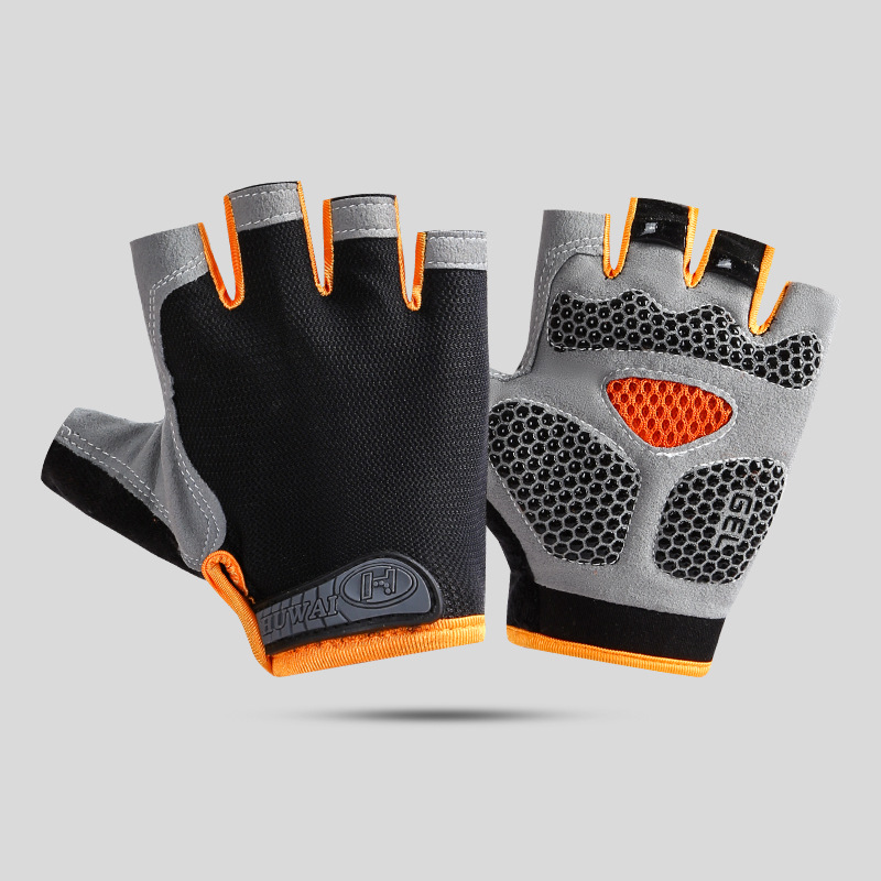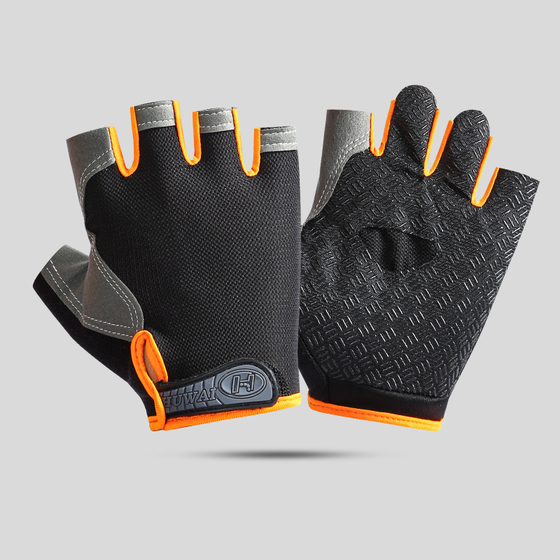 • 메쉬 일반 반손가락 장갑 - 검정색과 주황색