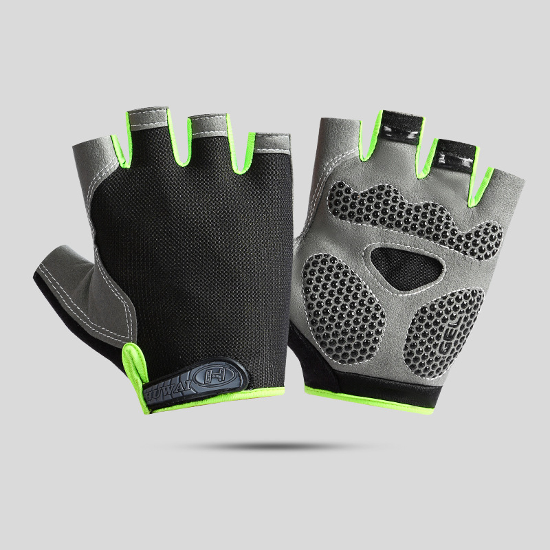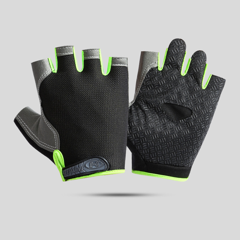 • 메쉬 일반 반손가락 장갑 - 검정색과 녹색