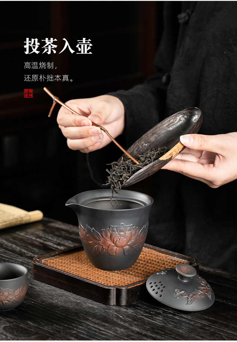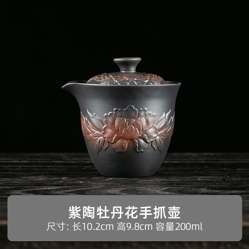 보라색 도자기 커버 주전자 가정용 차 컵 세라믹 대용량 단일 손 잡고 뜨거운 조각되지 않은 차 세트 차 메이커스토어 가기