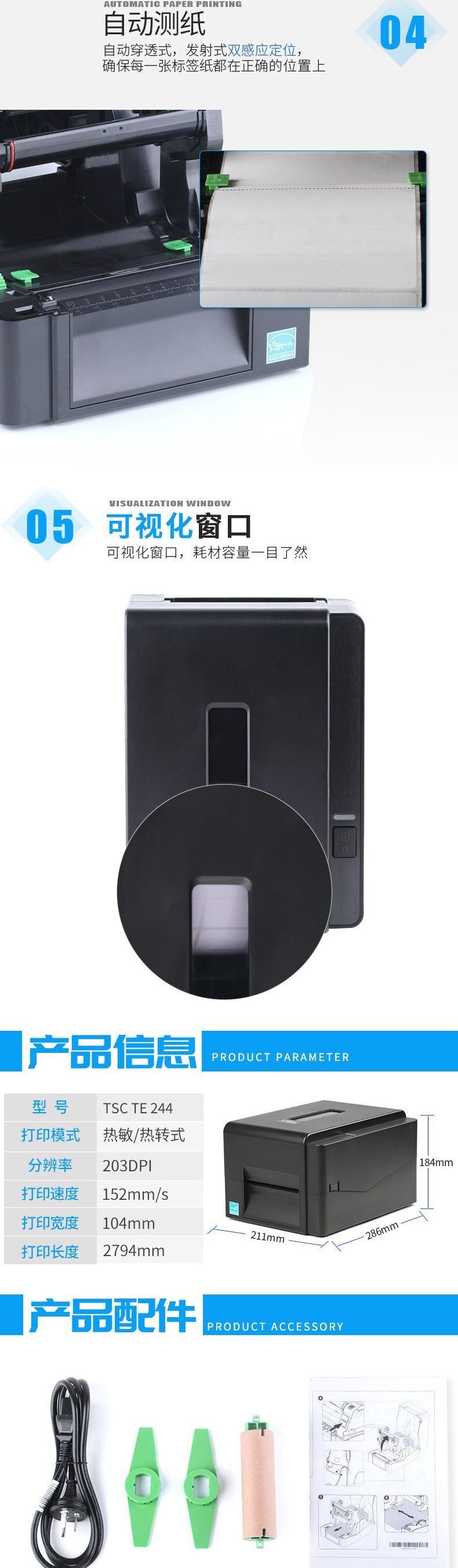 TSC 244 TE244/344 바코드 프린터 열 자체 접착 라벨 QR 코드 Bluetooth 무선 인쇄스토어 가기