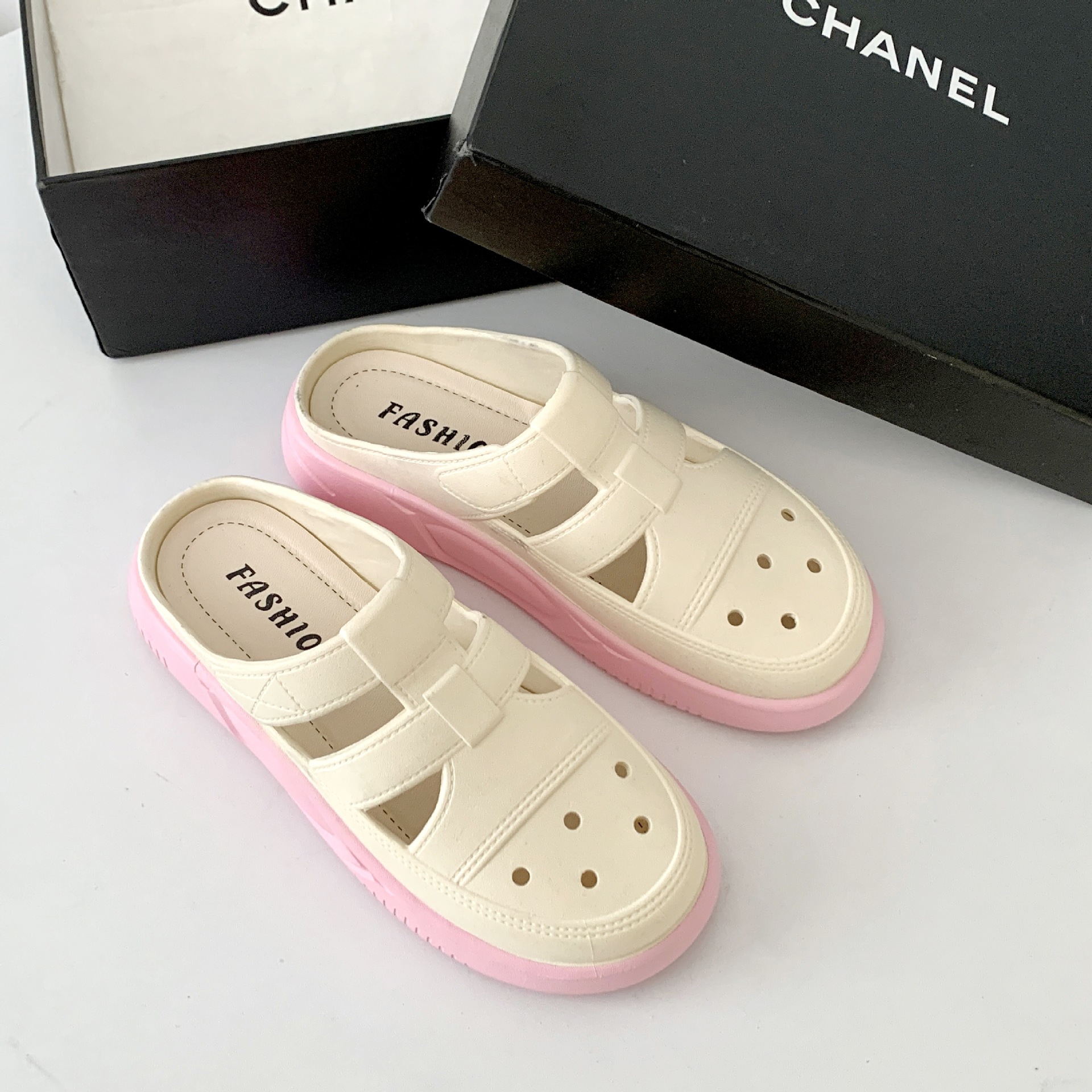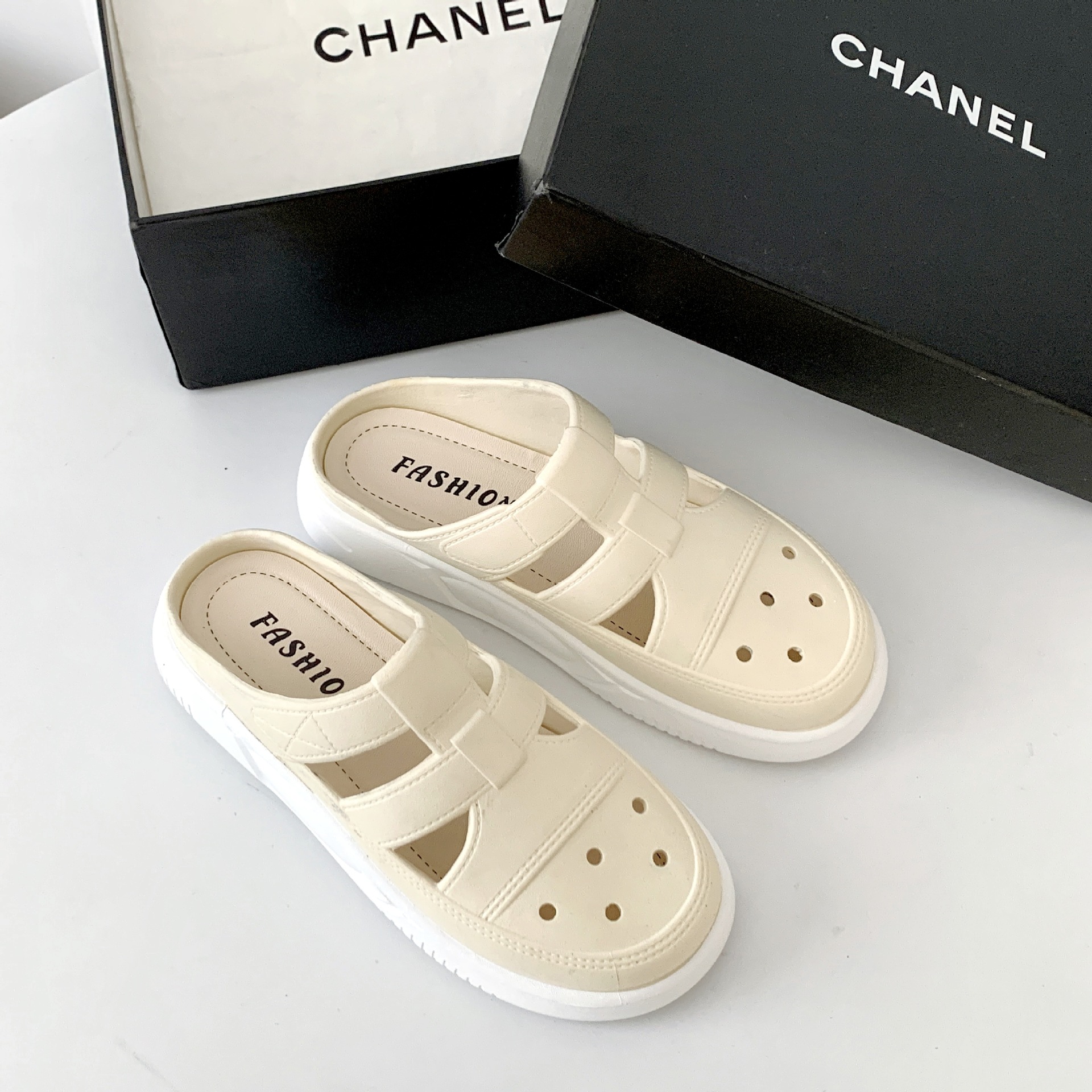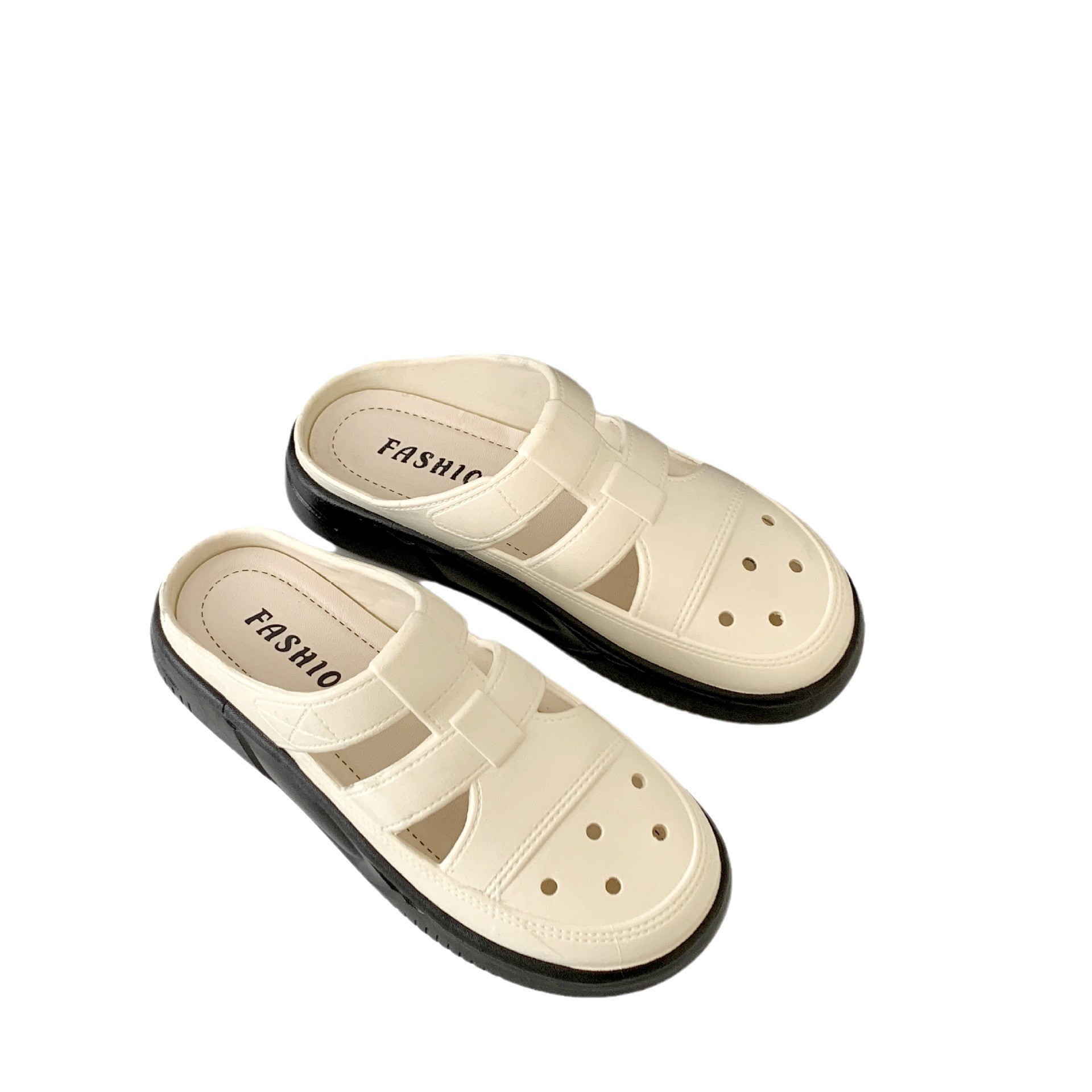 여름 Baotou 동굴 슬리퍼 외부 두꺼운 바닥 여성 캐주얼 홈 할로우 패션 비치 하프 슬리퍼