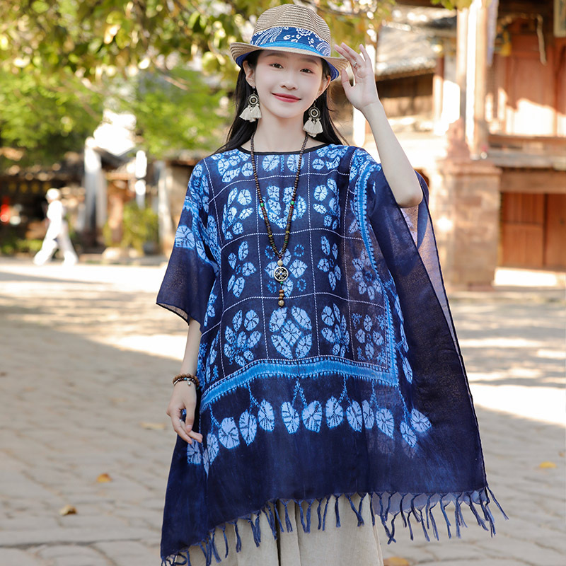 2024 새로운 민족 스타일 모자 운남 넥타이 염색 천 모자 봄과 여름 여행 선햇 패션 올 매치 밀짚 모자