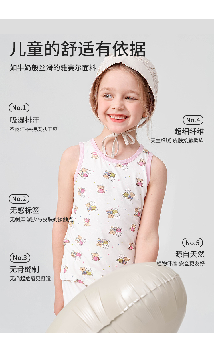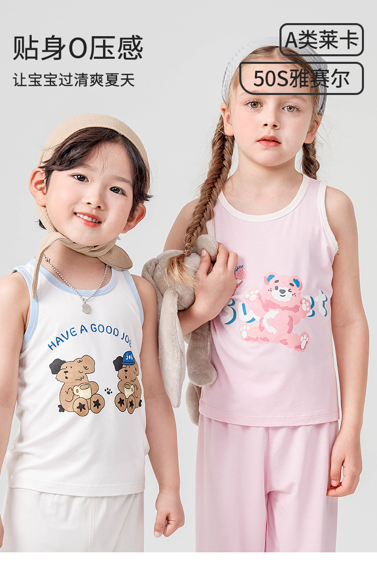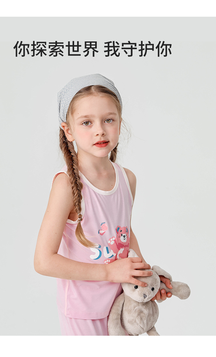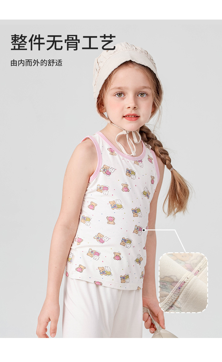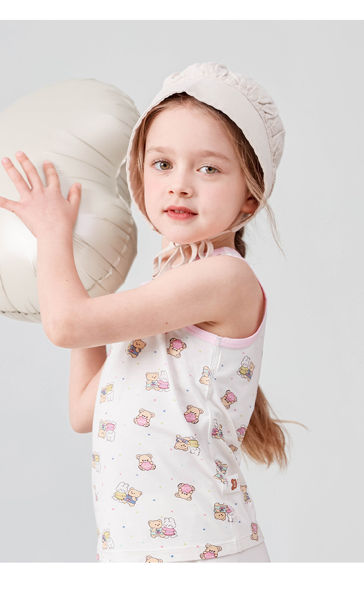 어린이 집 민소매 조끼 도매 여름 얇은 바닥 내부 뼈없는 만화 곰 소녀 조끼스토어 가기