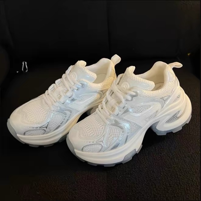 슈퍼 소프트 실버 토레 신발 여성 하이 엔드 센스 2024 여름 새로운 두꺼운 바닥 메쉬 통기성 높이 증가 캐주얼 운동화