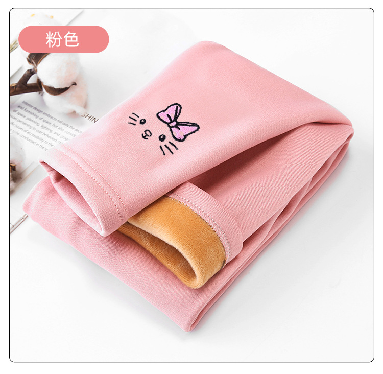 어린이 중소형 어린이 바지 여성 단색 만화 어린이 바지 기모 어린이 가을 겨울 기모 레깅스 소녀 레깅스
