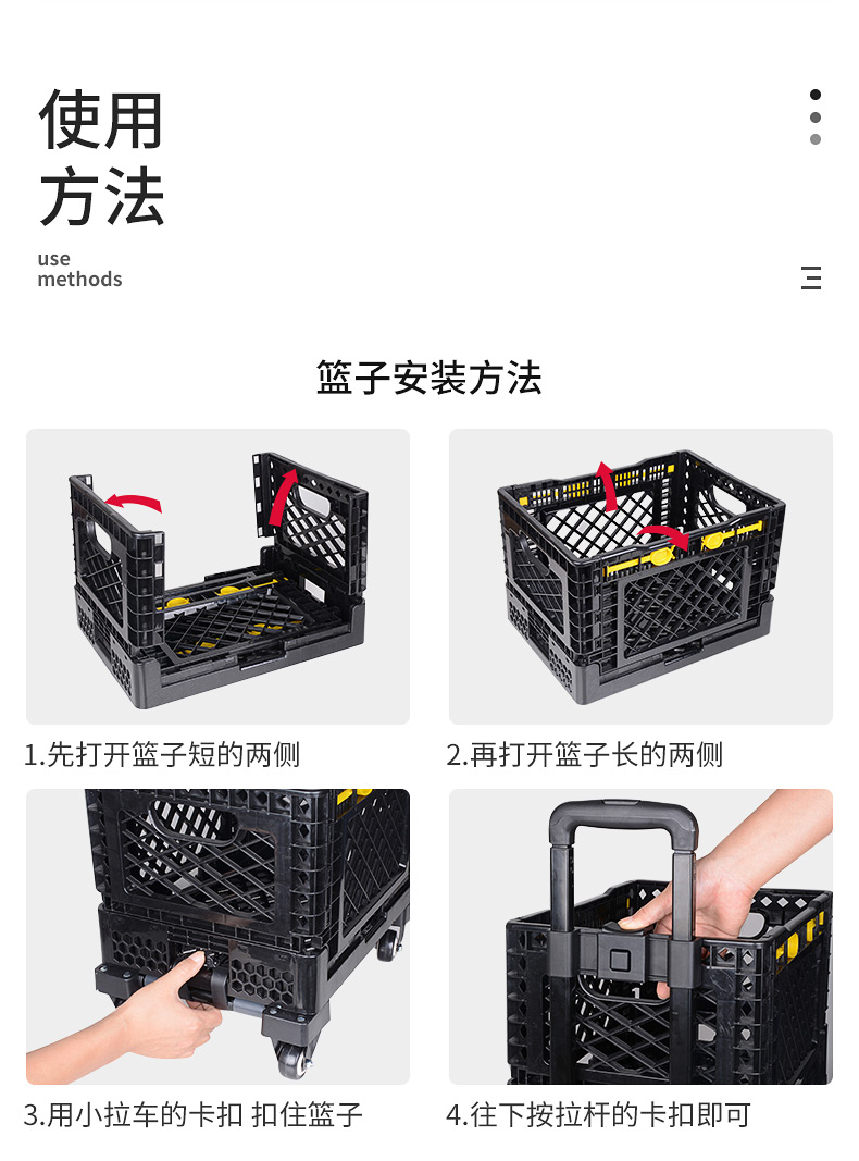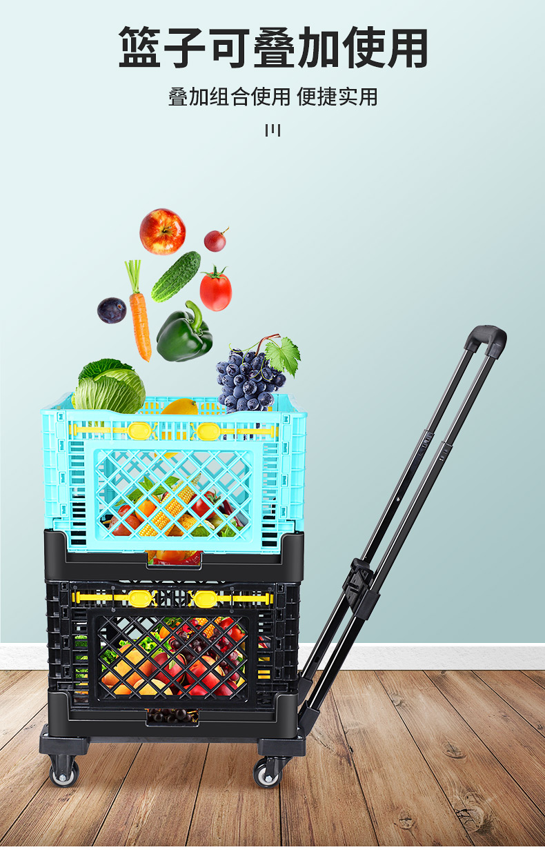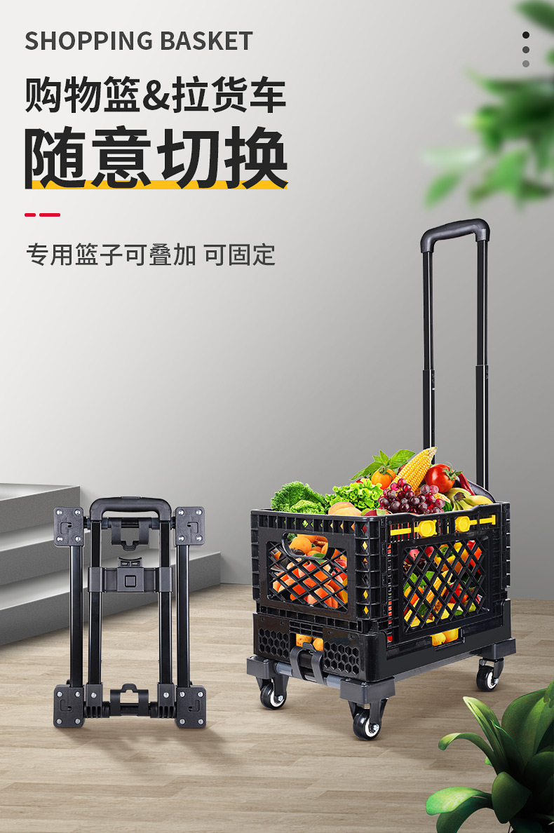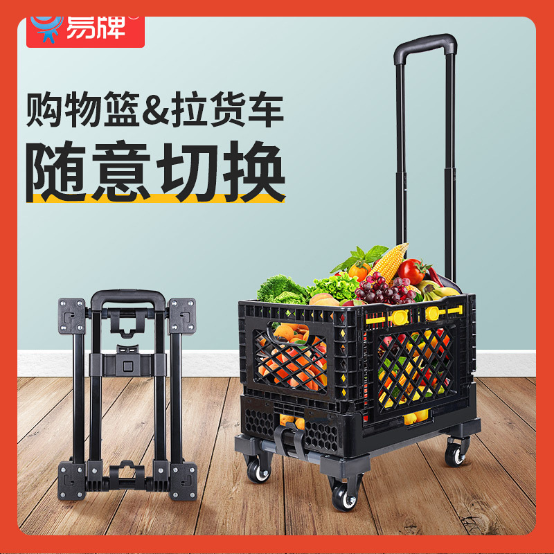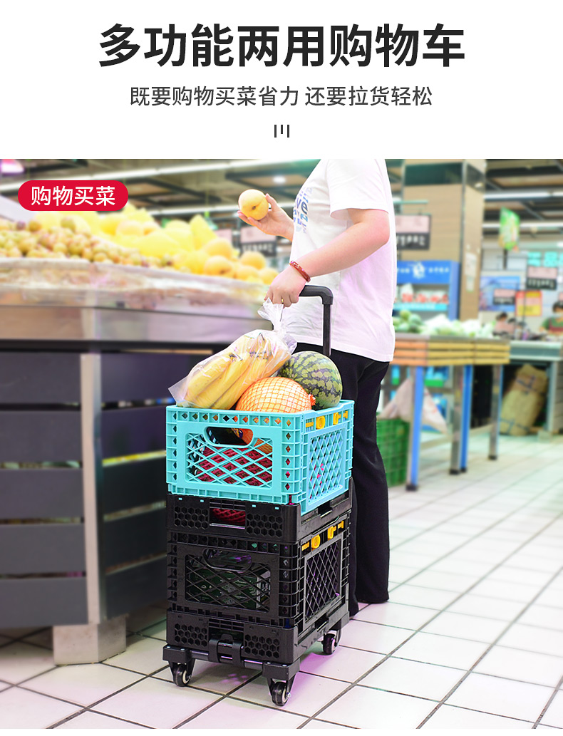 ✅ 슈퍼마켓 쇼핑 카트 다층 접이식 트롤리 채소 바구니 손수레 가정용 경량 쇼핑 카트스토어 가기