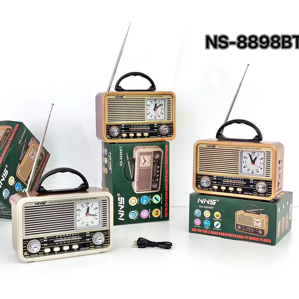 NS-8898BT 카드 라디오 멀티 밴드 FM/AM 휴대용 다기능 휴대용 블루투스 스피커 시계스토어 가기