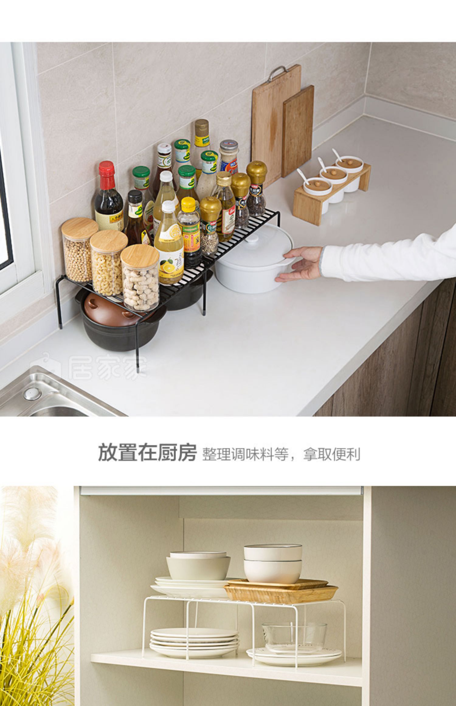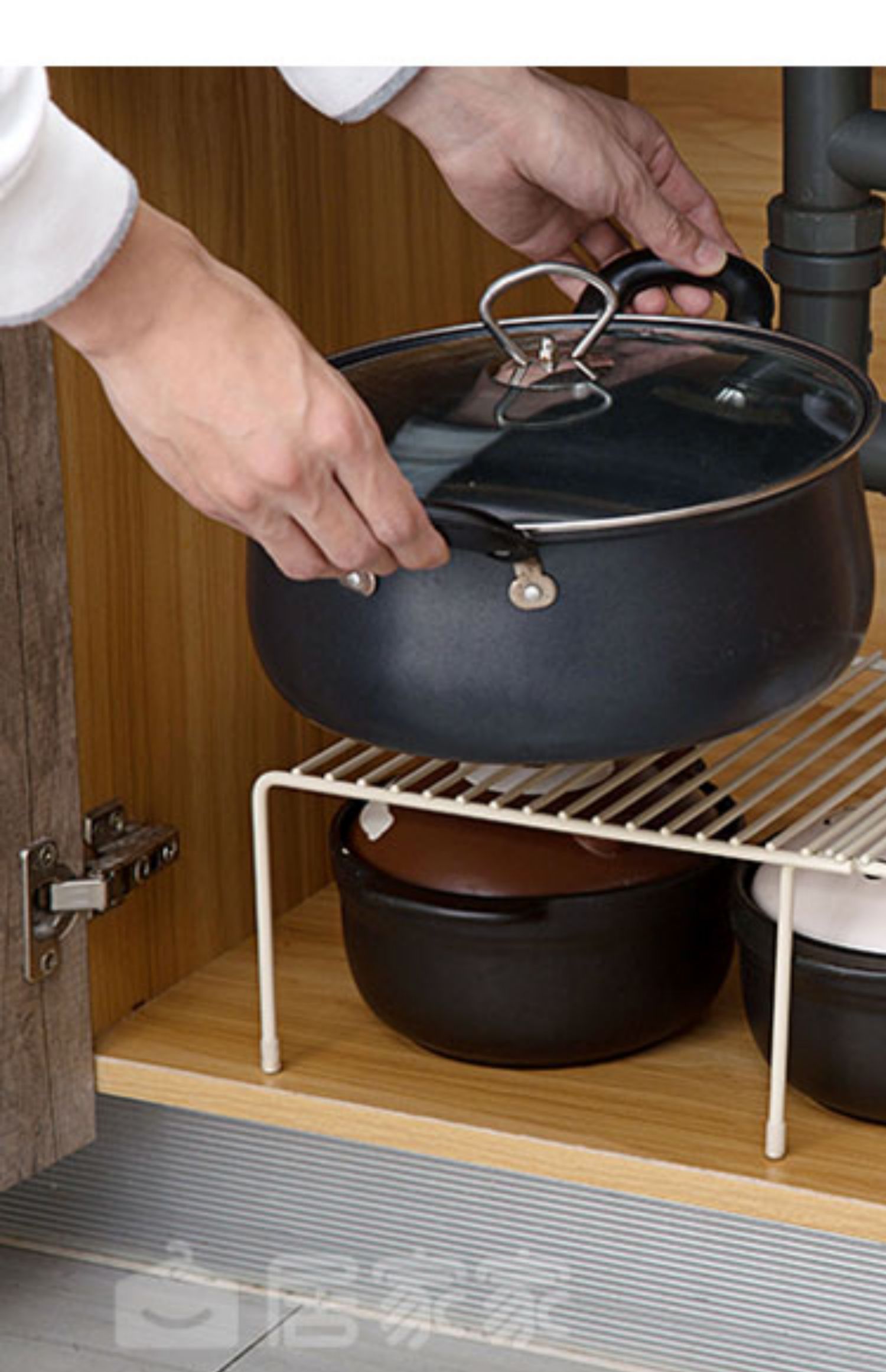 △ 주방 캐비닛 수납 선반, 캐비닛 계층형 선반, 싱크대 아래 접이식 배수구 수납 선반, 양념 선반, 철제 냄비스토어 가기
