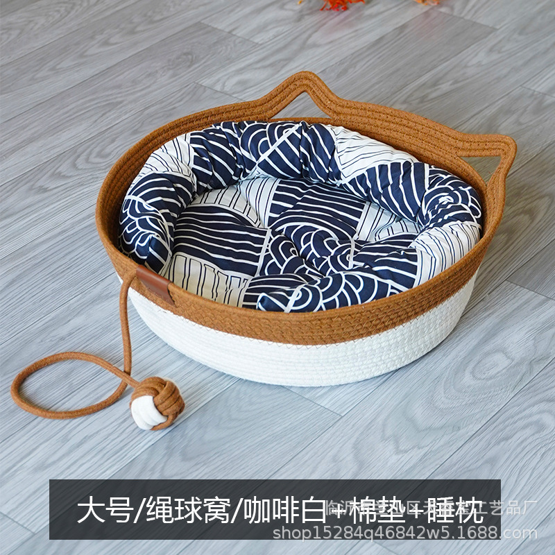 개 사육장 고양이 사육장 개 면 린넨 사계절 고양이 개 유니버설 사육장 애완 동물 귀 공 장난감 밧줄 소형 및 중형 고양이 개 패드스토어 가기