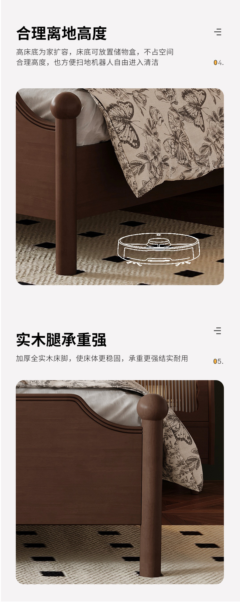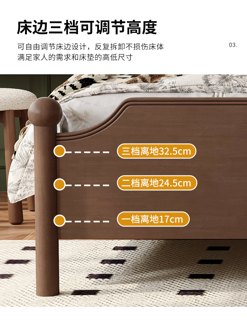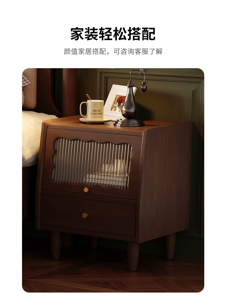 • 단단한 나무 침대 2 캐비닛 [호두 색상]]