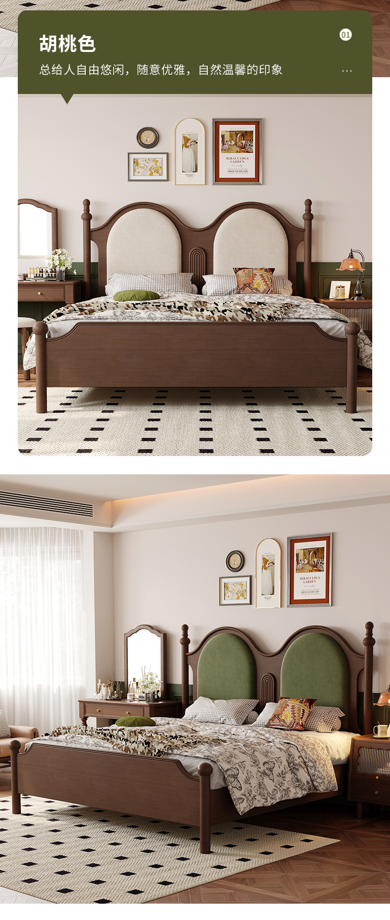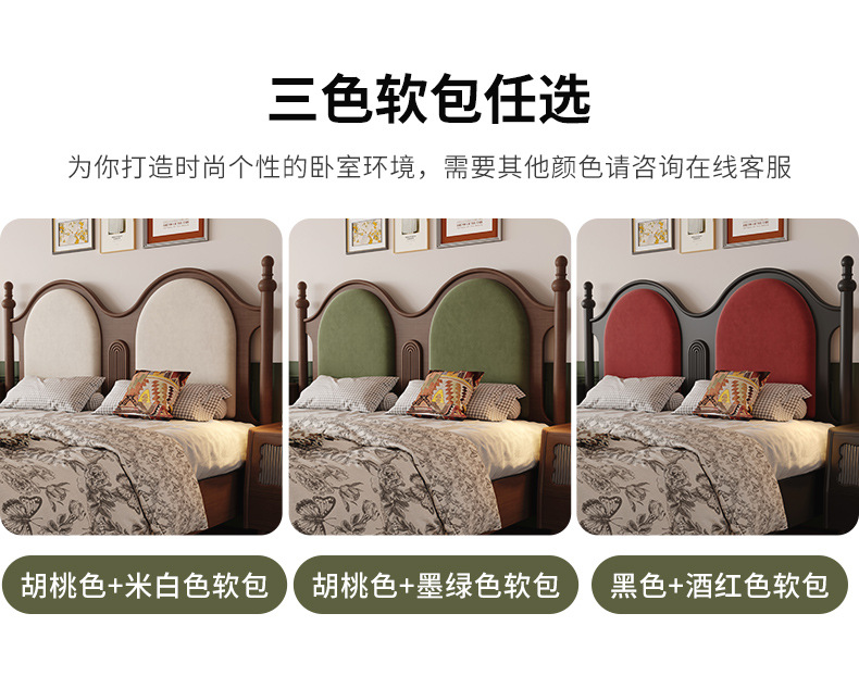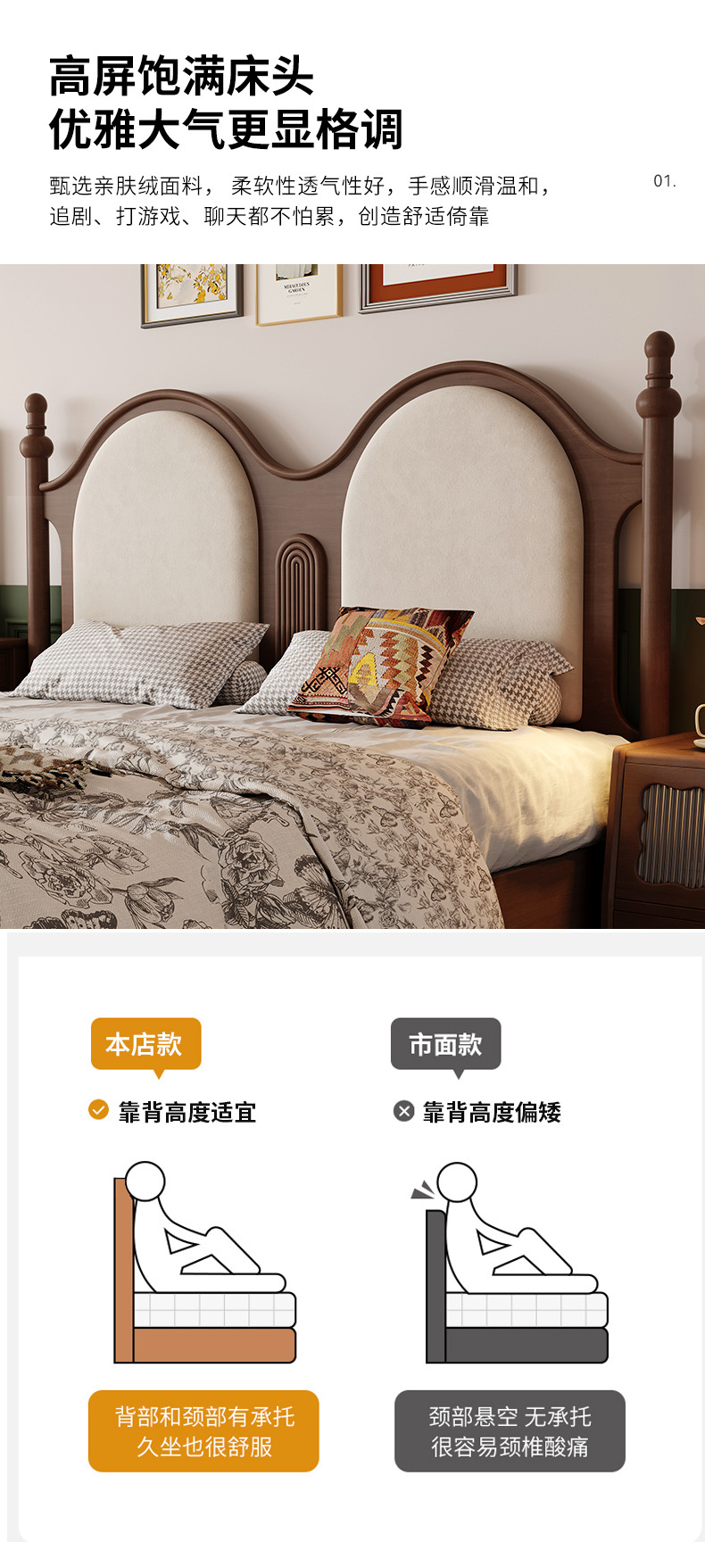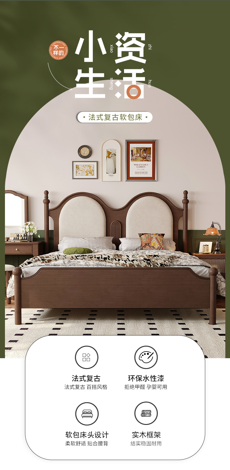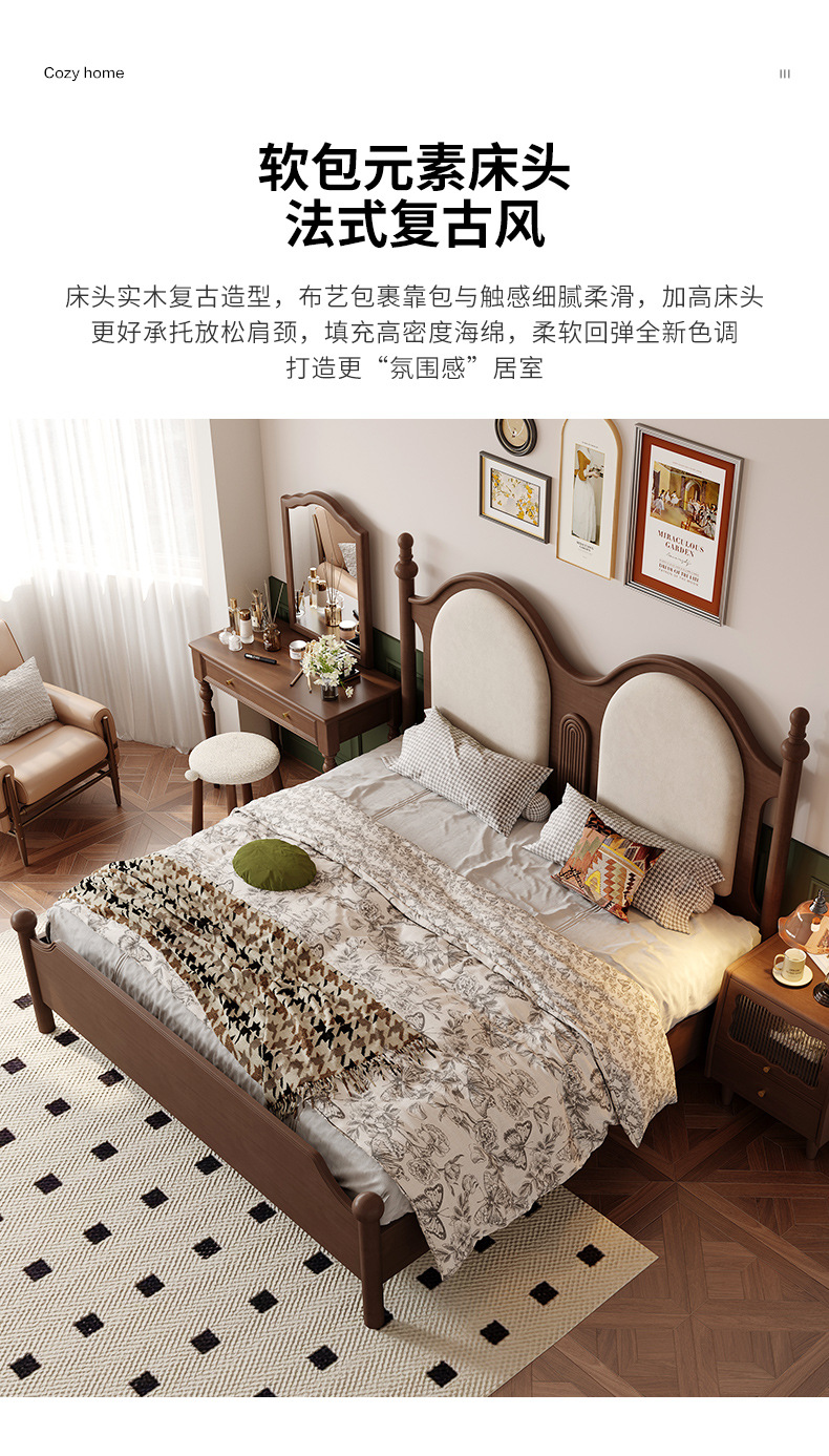 프랑스 레트로 소프트 백 침대 1.8 m 큰 침대 마스터 침실 단단한 나무 가구 간단한 중간 고대 더블 침대 빛 고급 직물스토어 가기