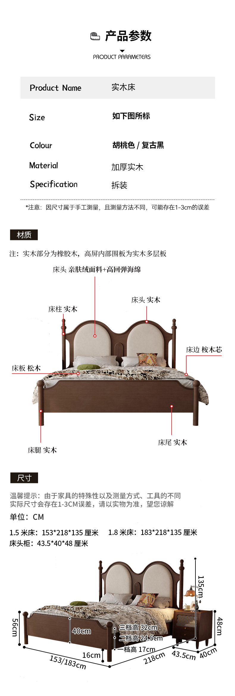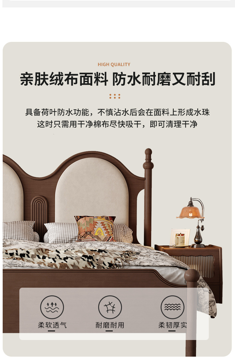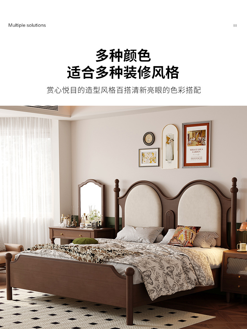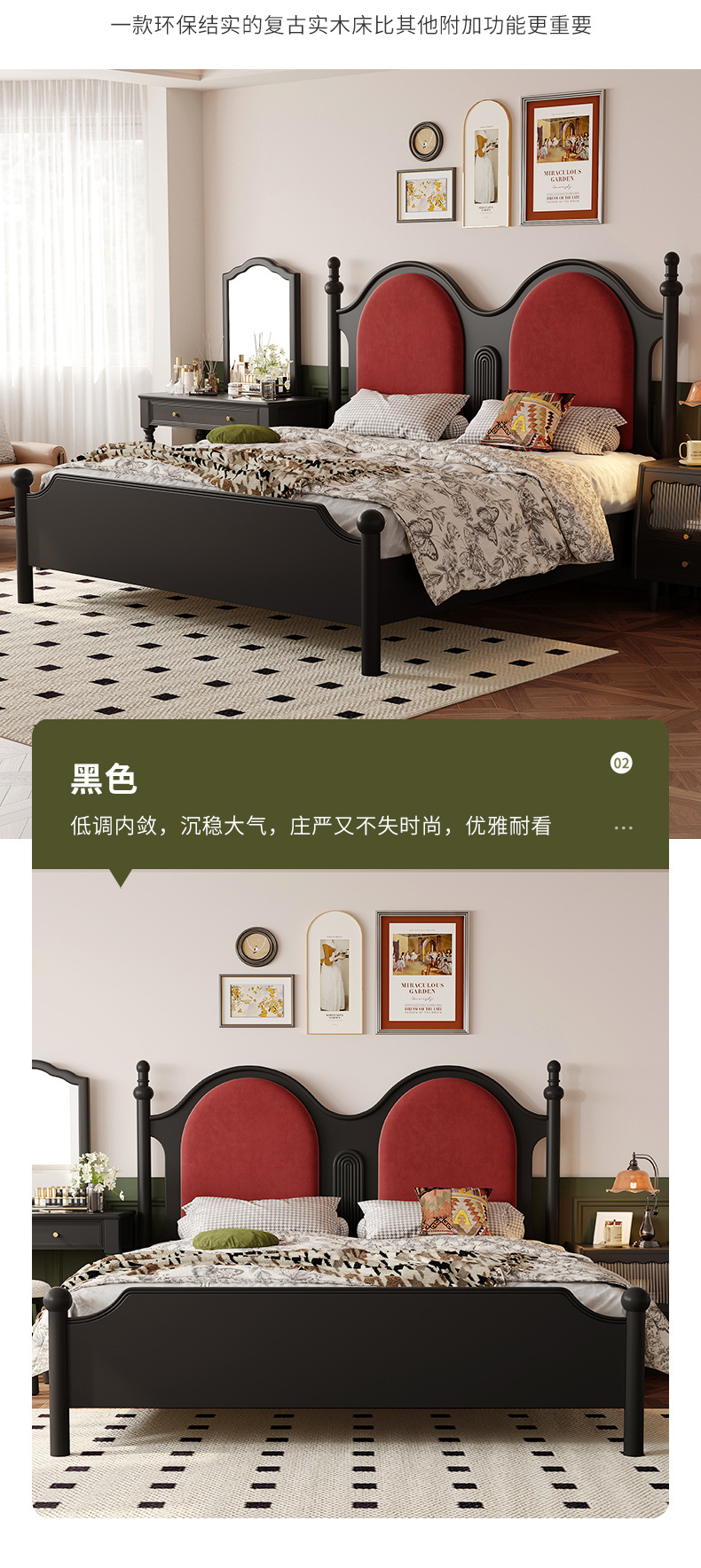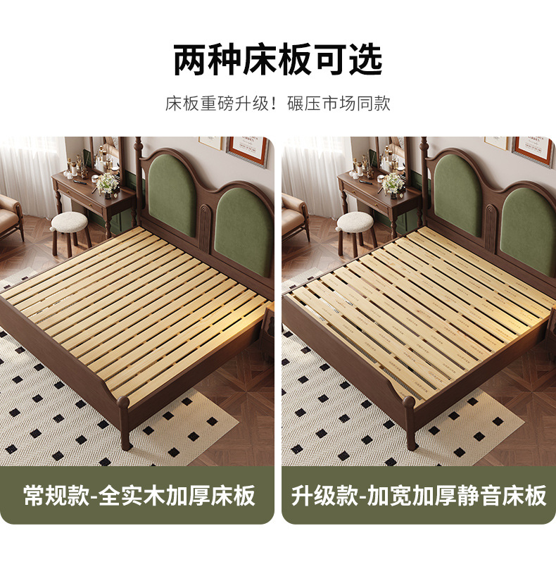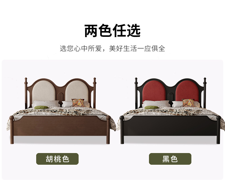 프랑스 레트로 소프트 백 침대 1.8 m 큰 침대 마스터 침실 단단한 나무 가구 간단한 중간 고대 더블 침대 빛 고급 직물