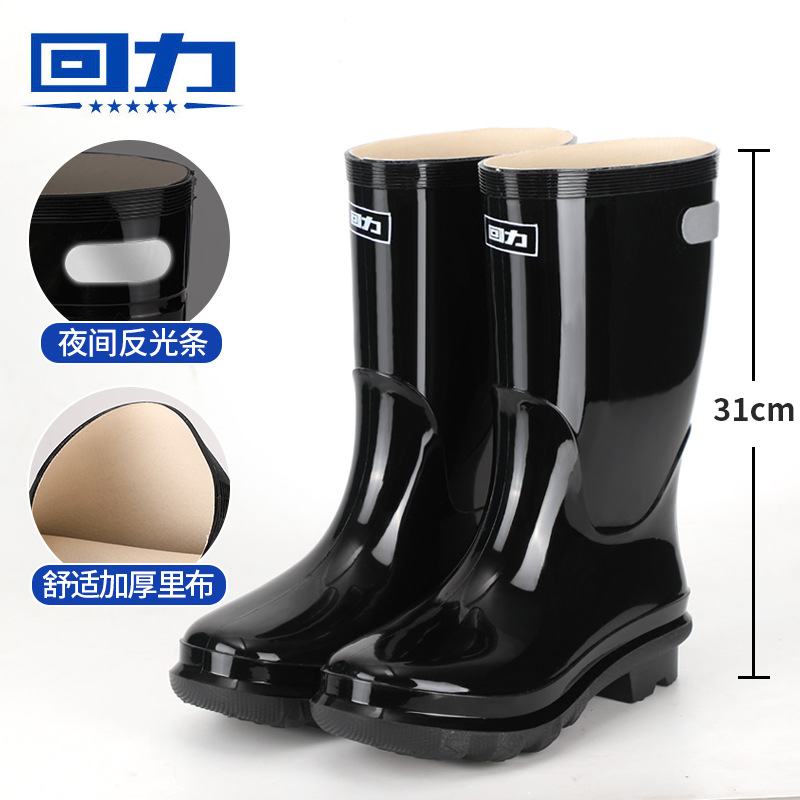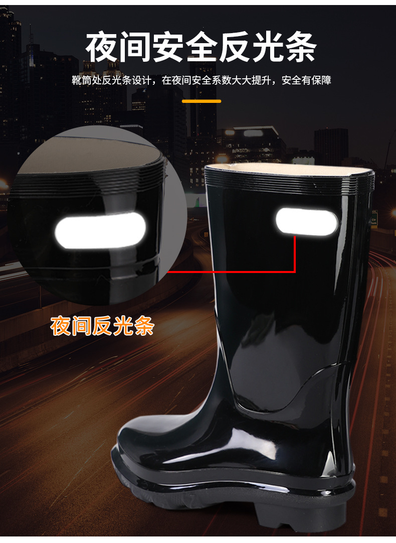 재고 도매 028 두꺼운 미끄럼 방지 산업 및 광산 Huili 물 신발 끈 반사 스트립 노동 보호 높은 튜브 남성 Huili 장화스토어 가기