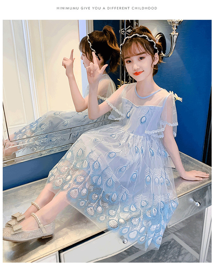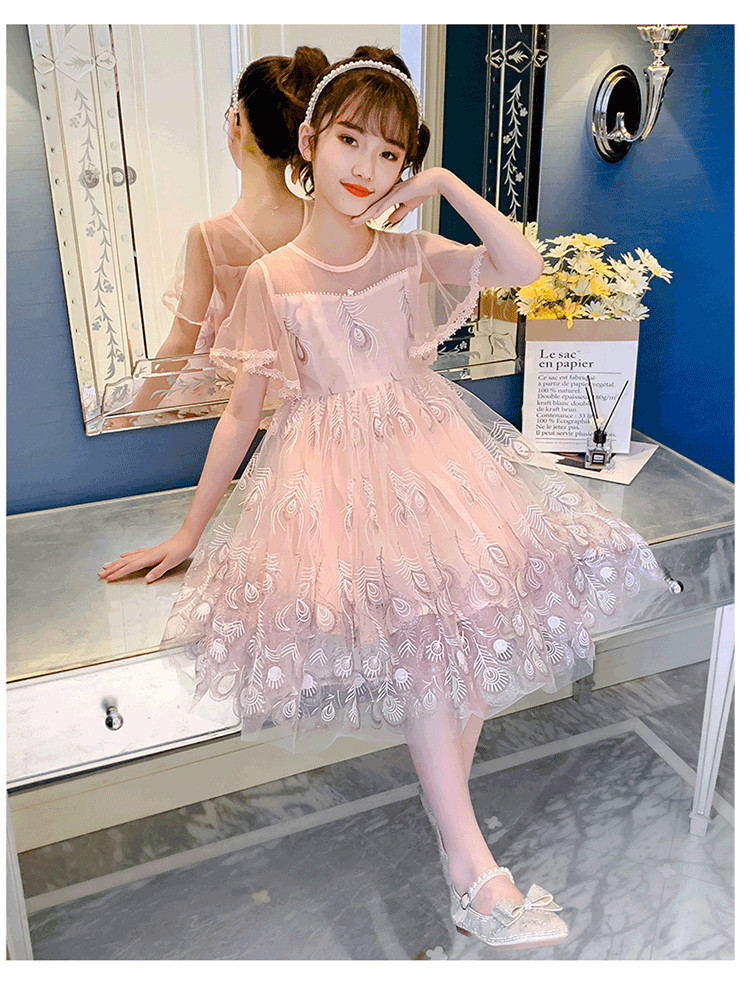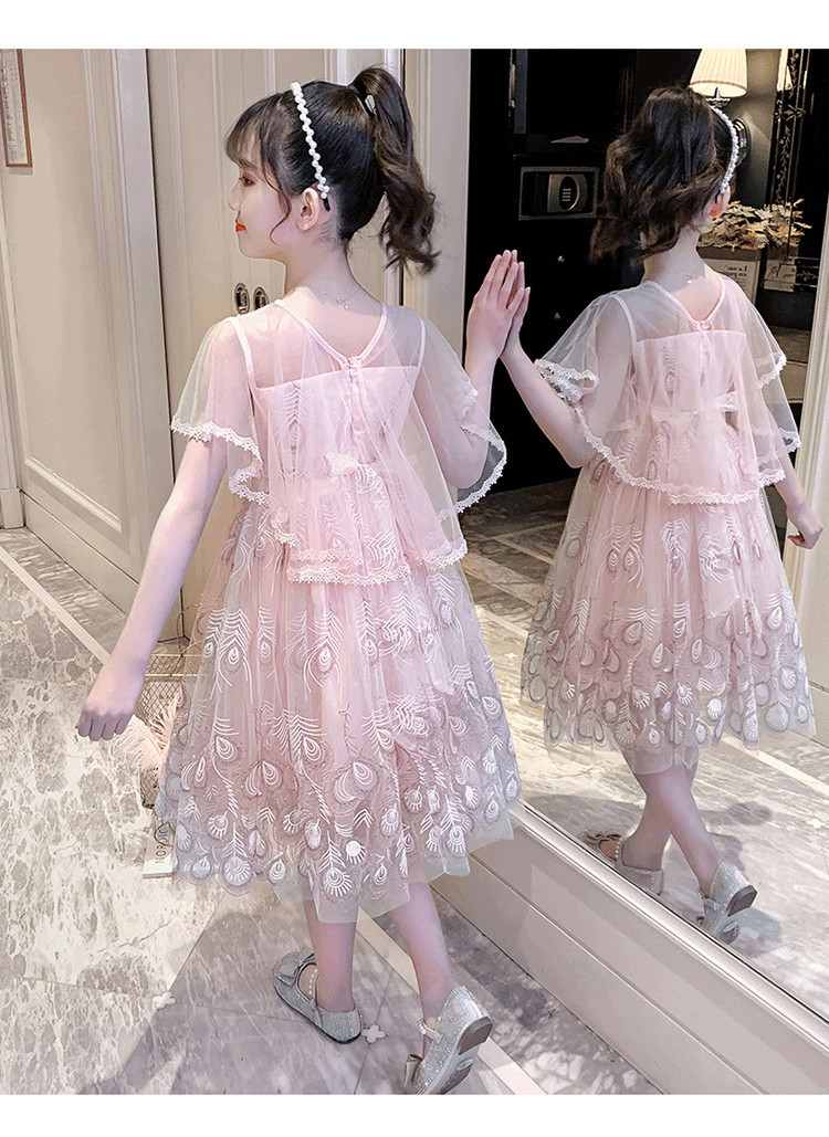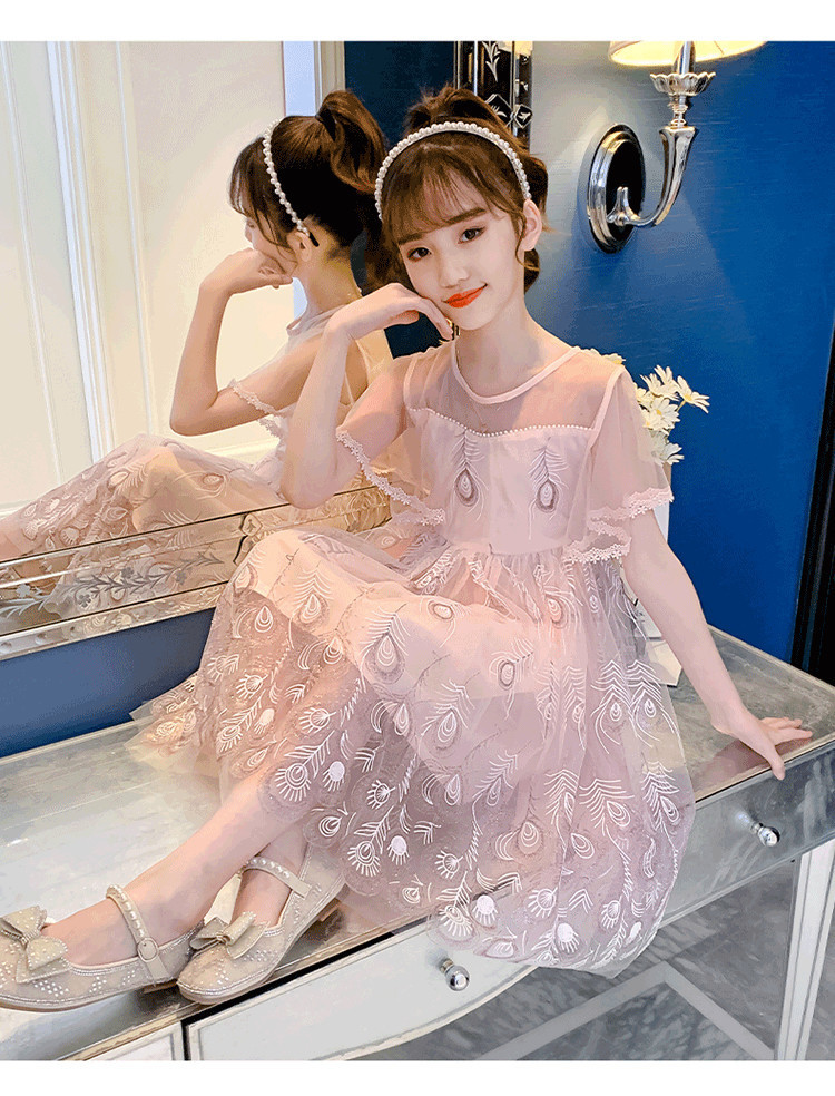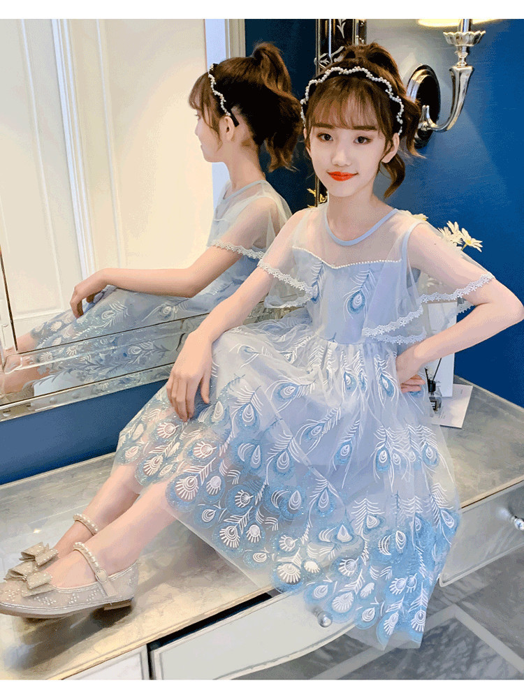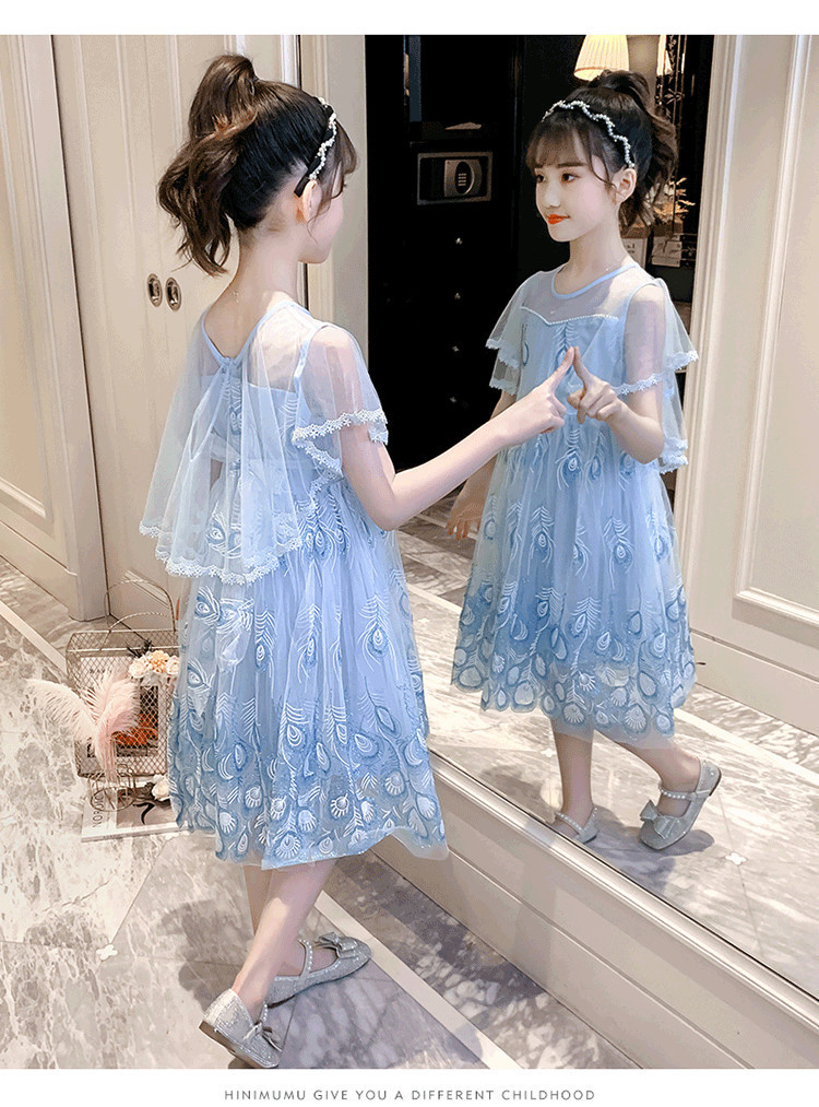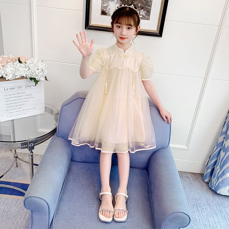 소녀 여름 원피스 원피스 2023 새로운 여름 소녀 스타일리제 메쉬 큰 어린이 공주 스커트 어린이 여름 스커트스토어 가기