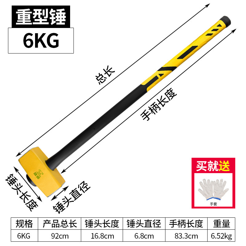 • 섬유 손잡이 긴 손잡이 플립형 석공 망치 6kg