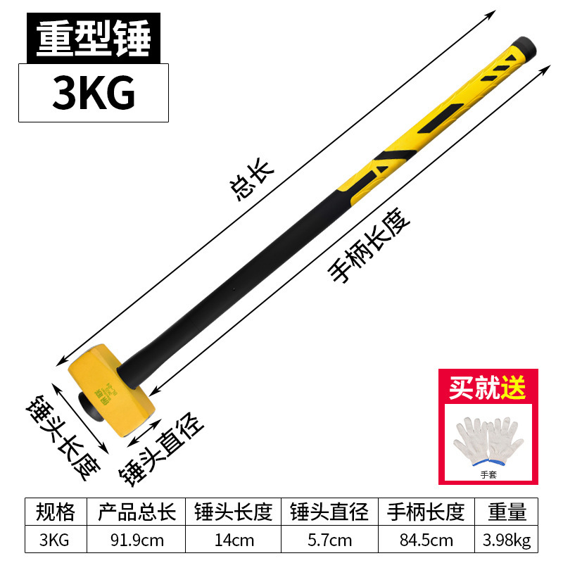 • 섬유 손잡이 긴 손잡이 플립형 석공 망치 3kg
