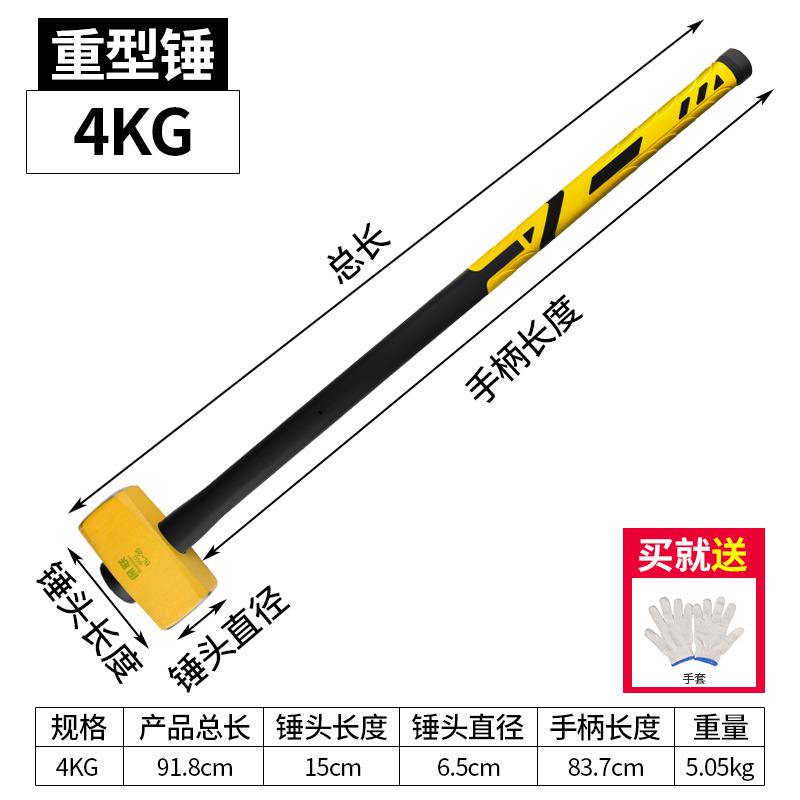 • 섬유 손잡이 긴 손잡이 플립형 석공 망치 4kg
